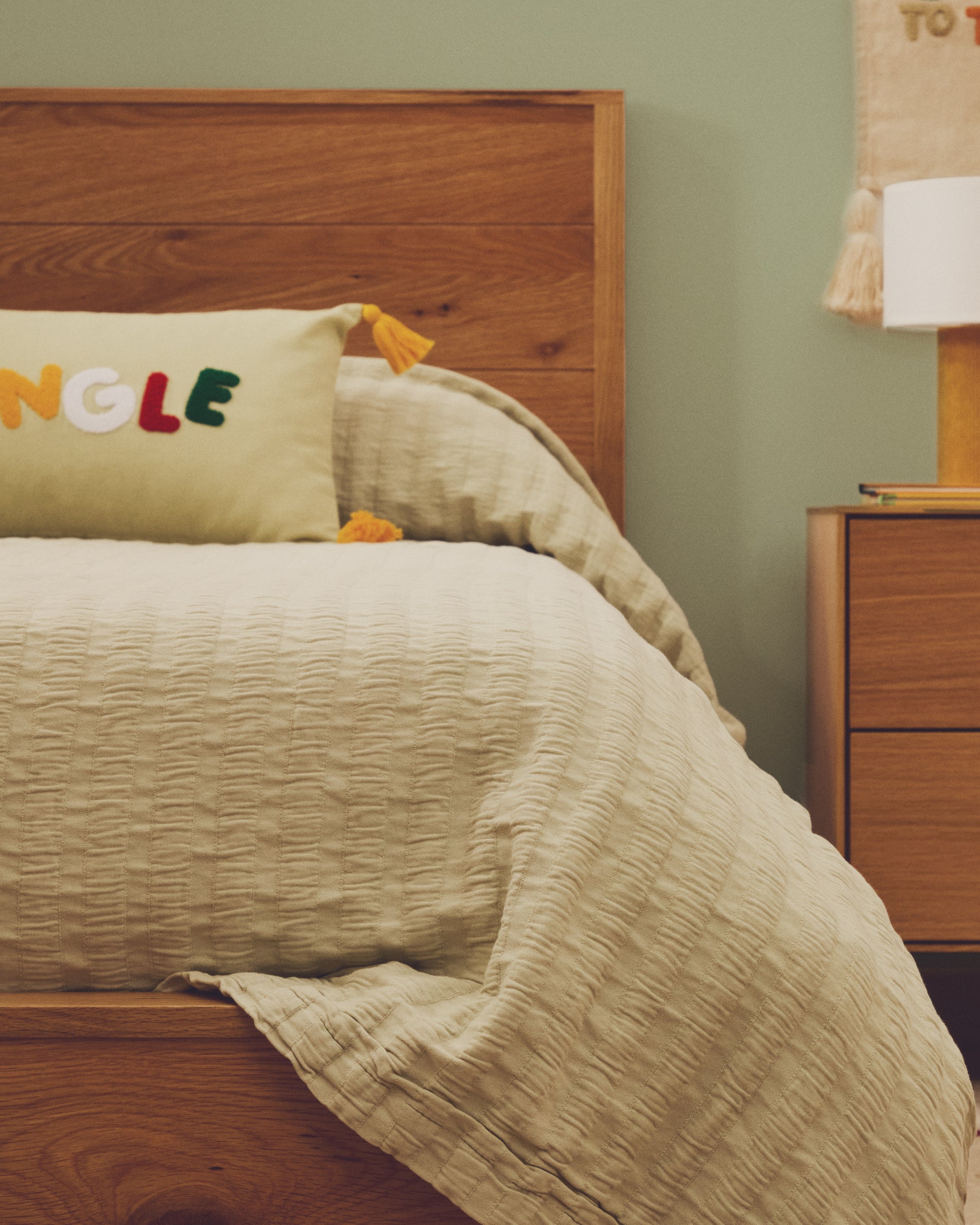 Rilune 100% cotton bedspread with light green embossed stripe effect for convertible cot