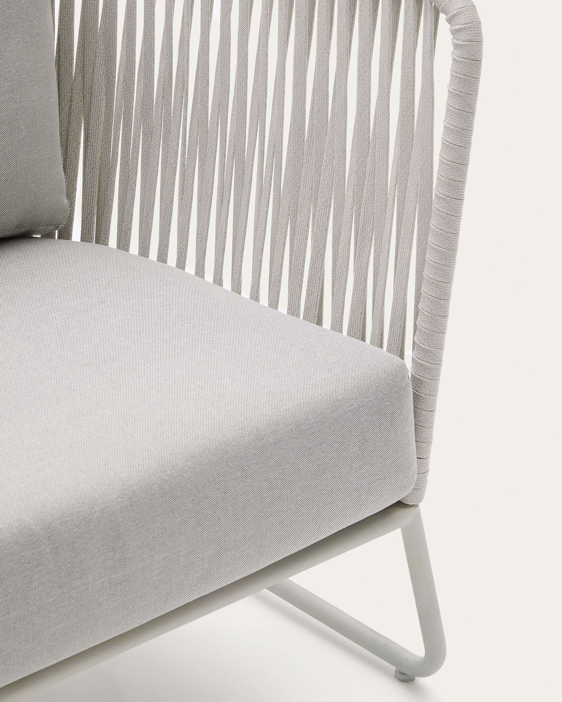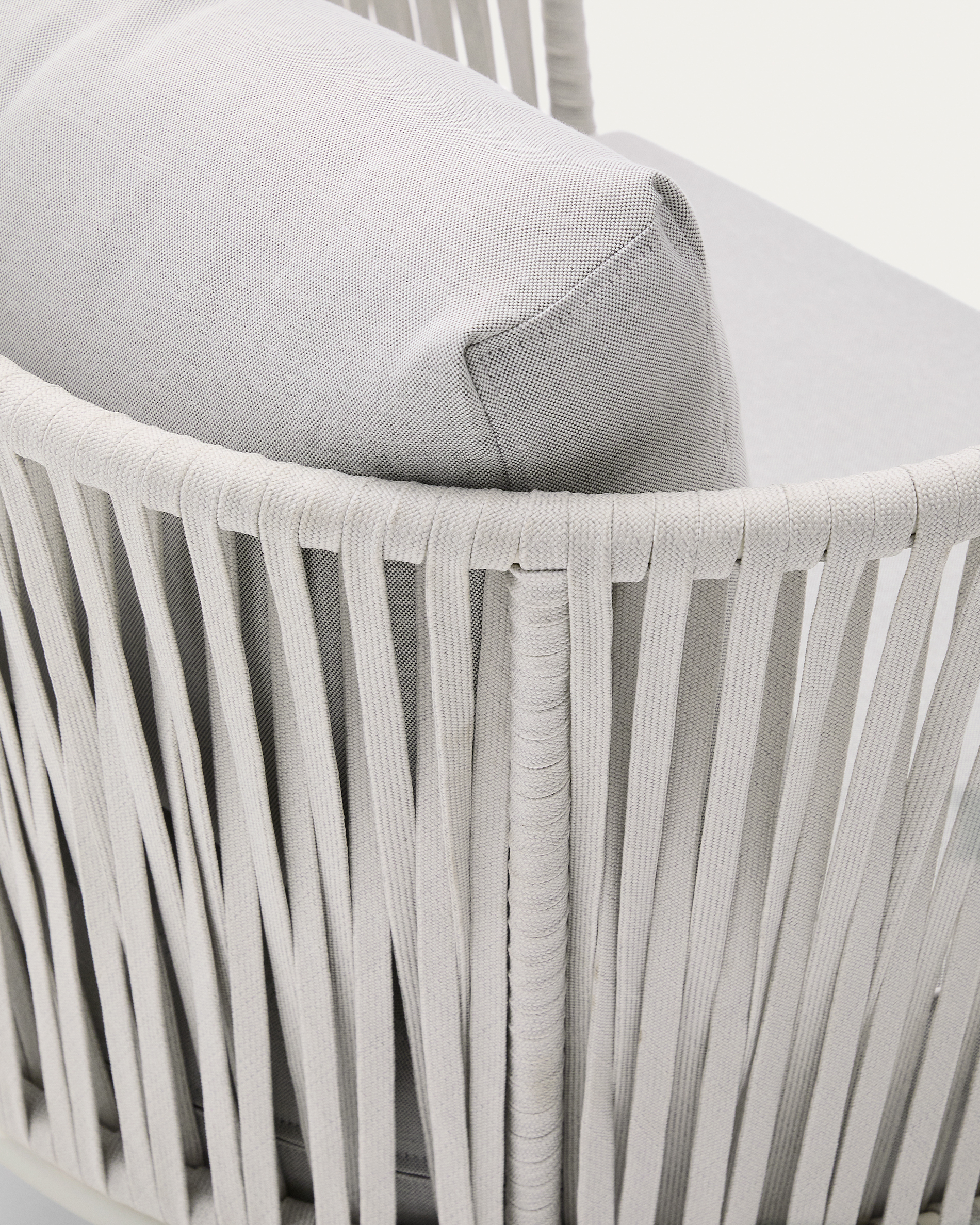 • Armchair with backrest and arms in hand-woven UV-resistant rope cord.