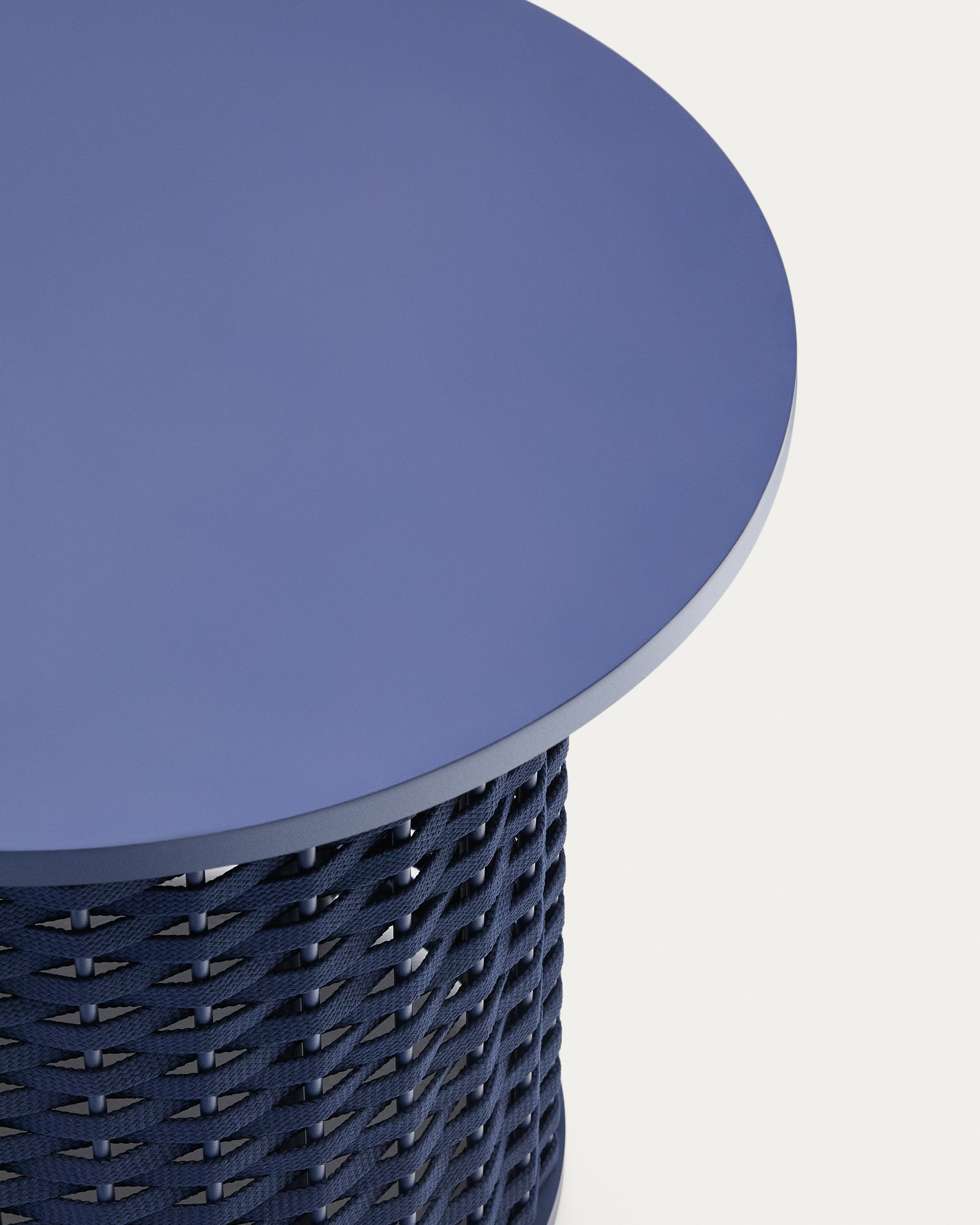 Sedalis outdoor side table in aluminium and blue rope cord Ø50cm