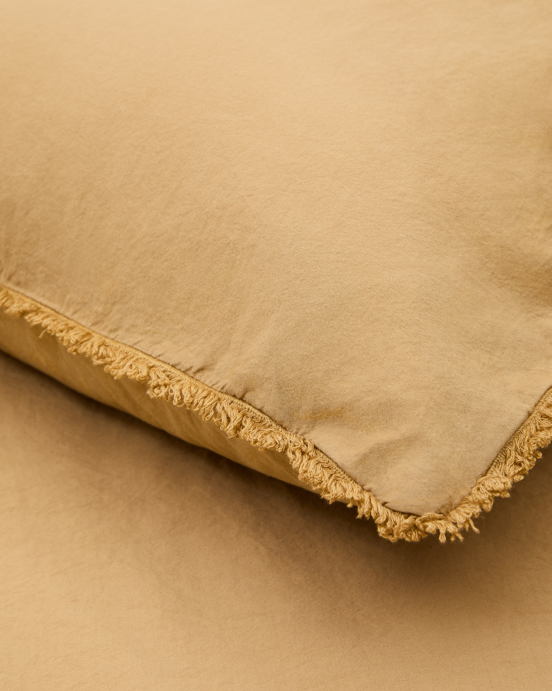 Sifinia mustard duvet and pillow cover set, 100% cotton percale fringes, 90 cm bed