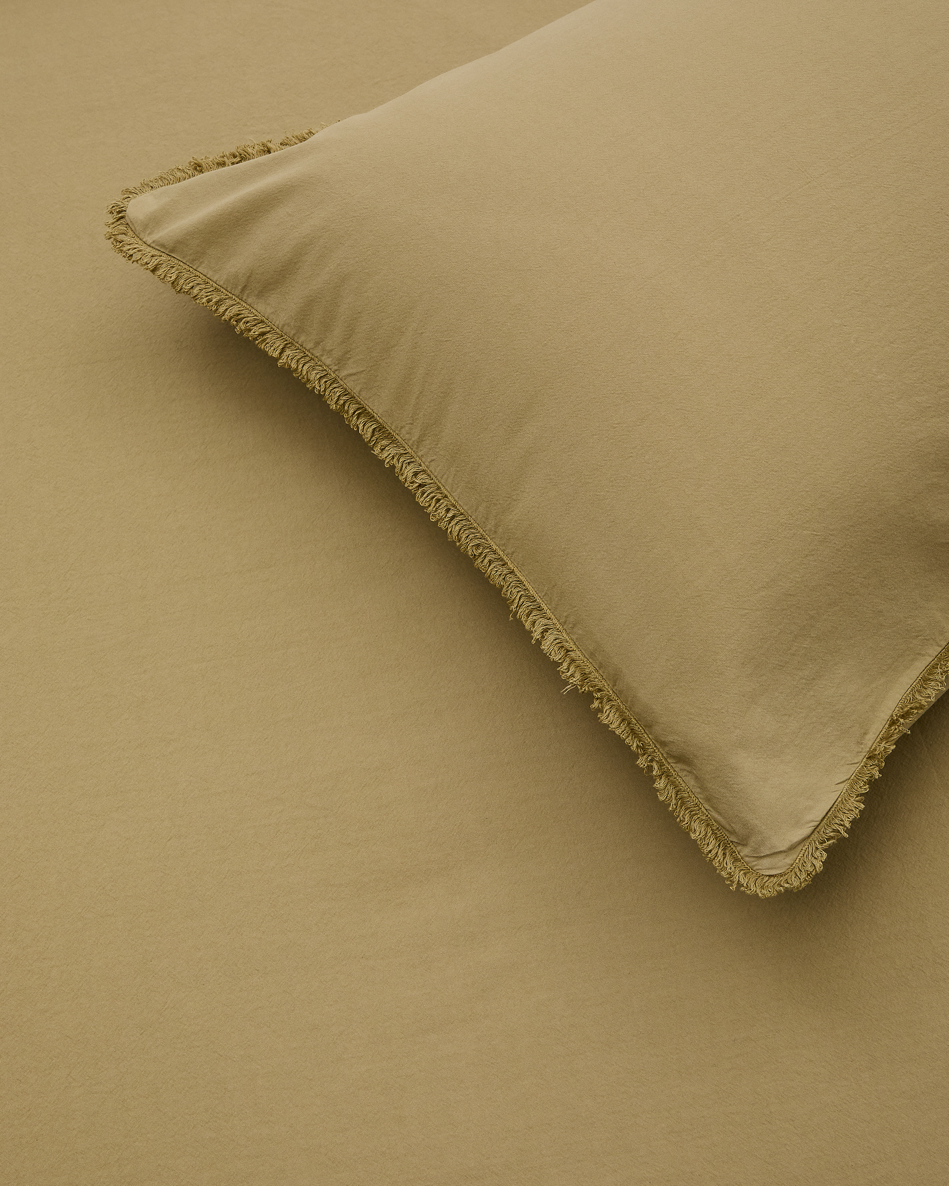 • Bed set with fringe detail on the pillow. 150 x 220 cm for a 90 x 200 cm mattress. Includes a 45 x 110 cm pillowcase.