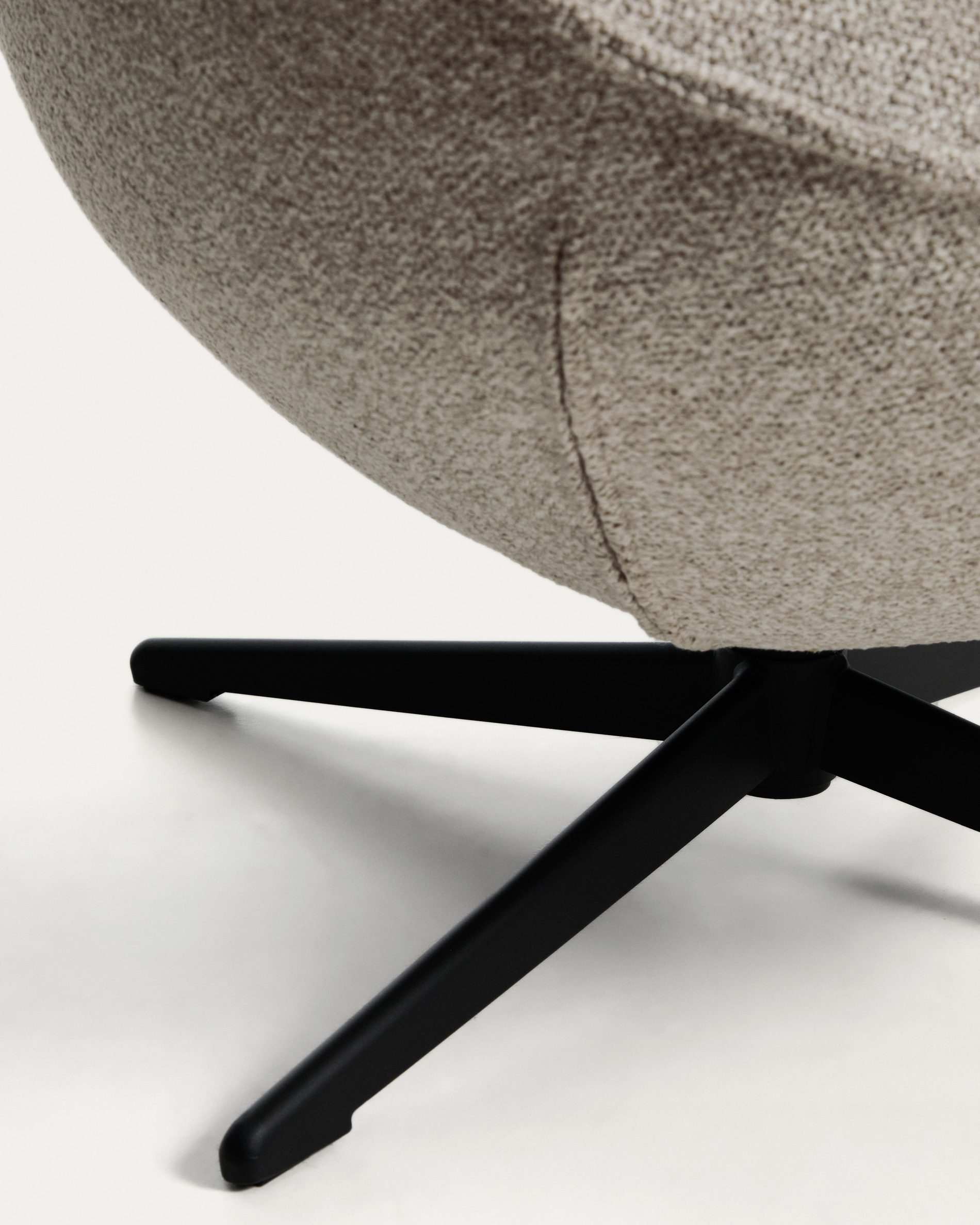 Sorile swivel armchair in beige chenille and steel with black finish FSC 100%