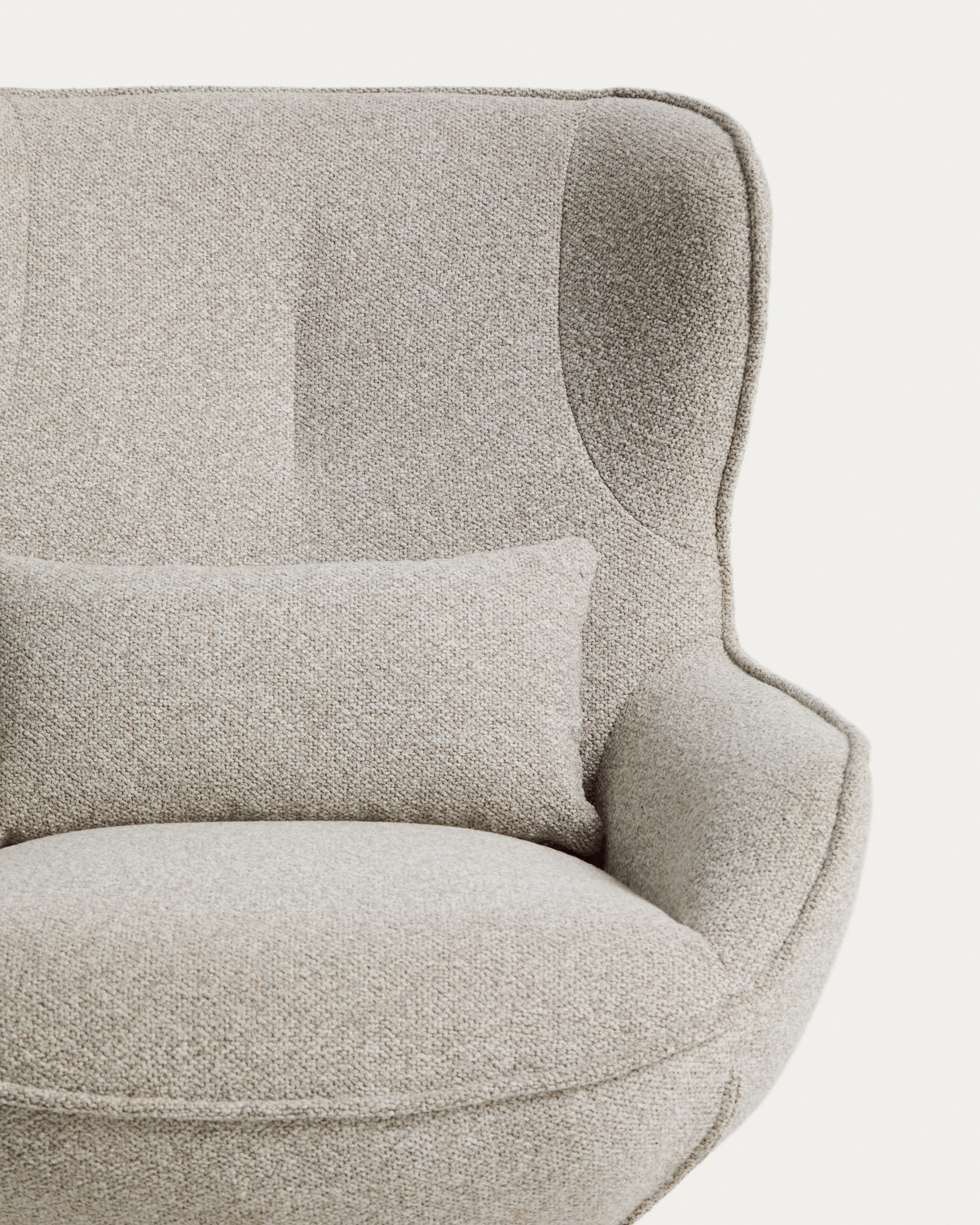 • Swivel armchair upholstered in two-tone chenille fabric with a large structure, bouclé effect and soft feel. Fabric with high abrasion resistance, high light fastness and water-repellent treatment.