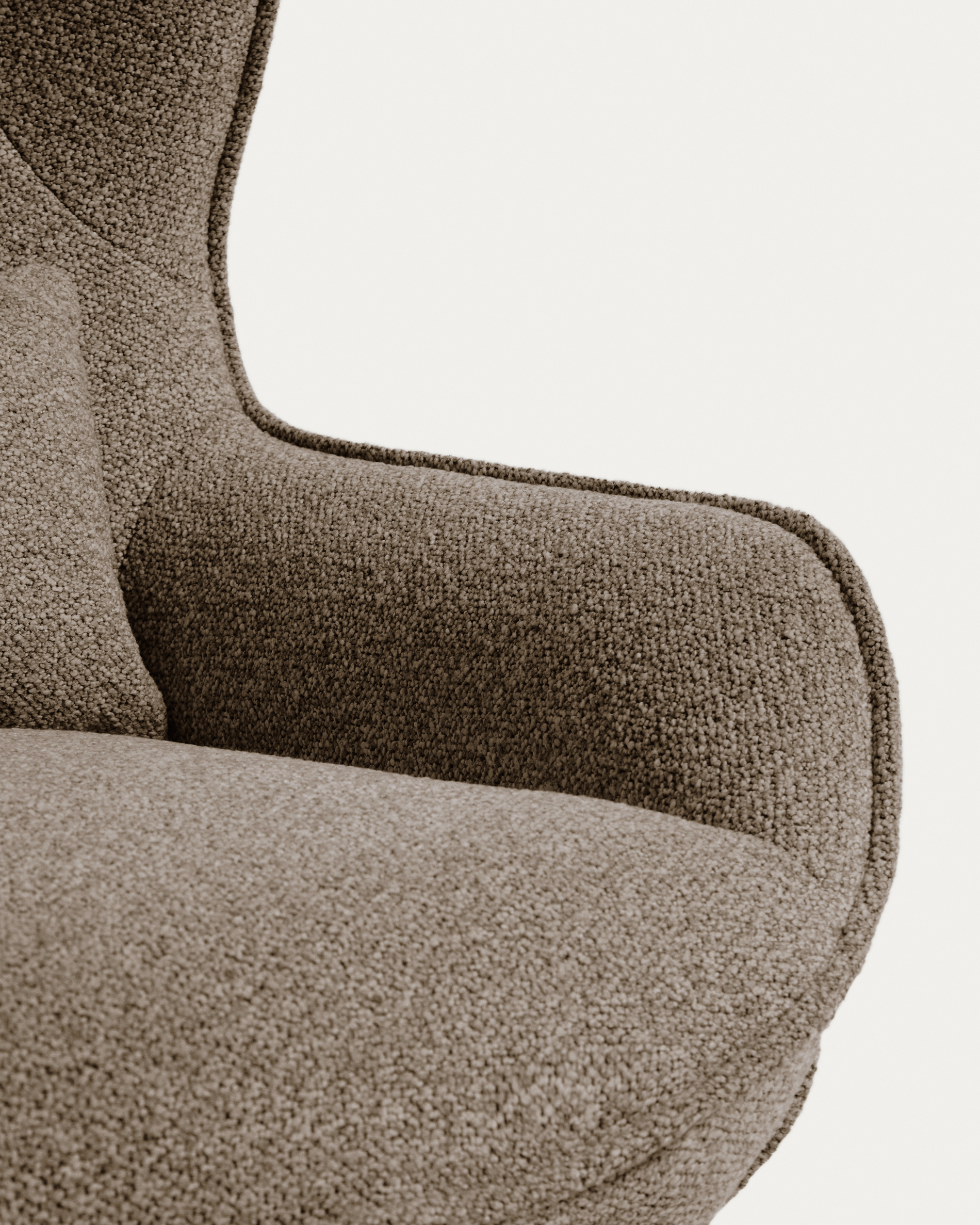 • Swivel armchair upholstered in two-tone chenille fabric with a large structure, bouclé effect and soft feel. Fabric with high abrasion resistance, high light fastness and water-repellent treatment.