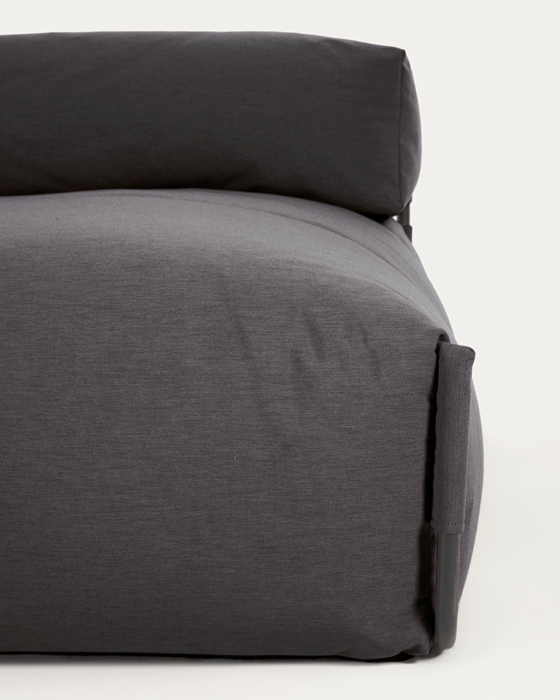 Square chaise longue pouffe with backrest in dark grey with black aluminium, 165 x 101 cm