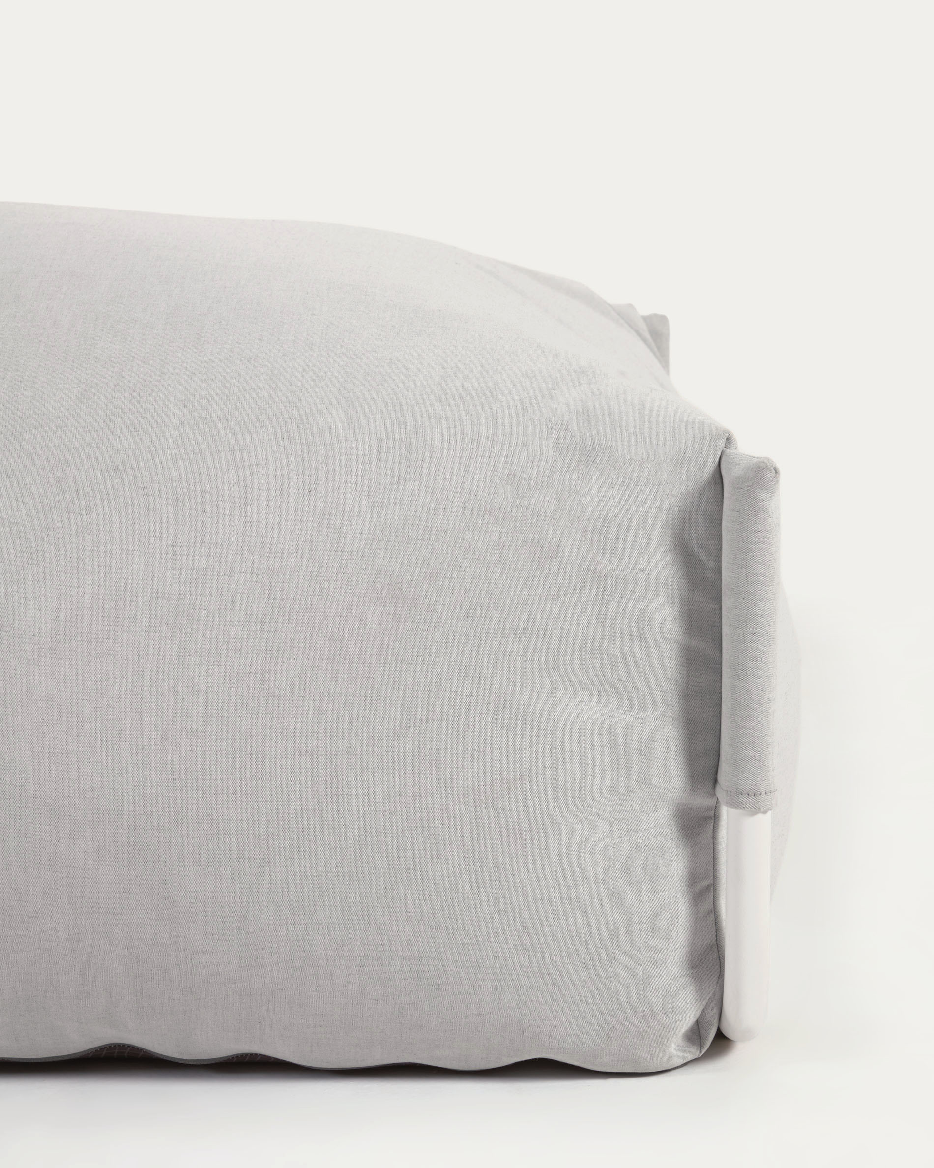 Square modular 100% outdoor sofa pouffe in light grey with white aluminium, 101 x 101 cm