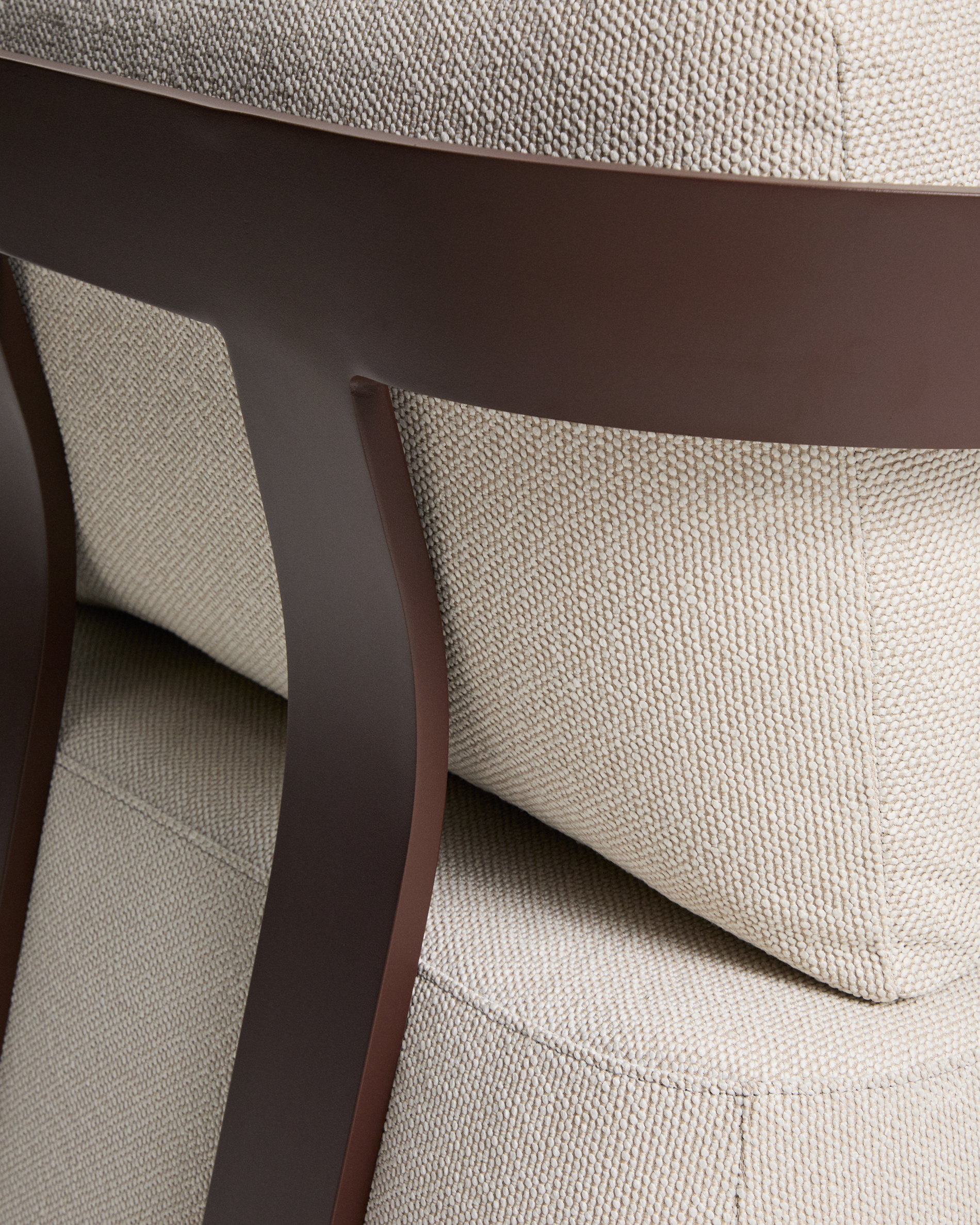Care instructions: Frame: Clean with a damp cloth and dry immediately. Backrest cushion cover: Cold washing. Seat cushion: gently rub using a mild cleaner, then remove the soap with a damp cloth without soaking the fabric.