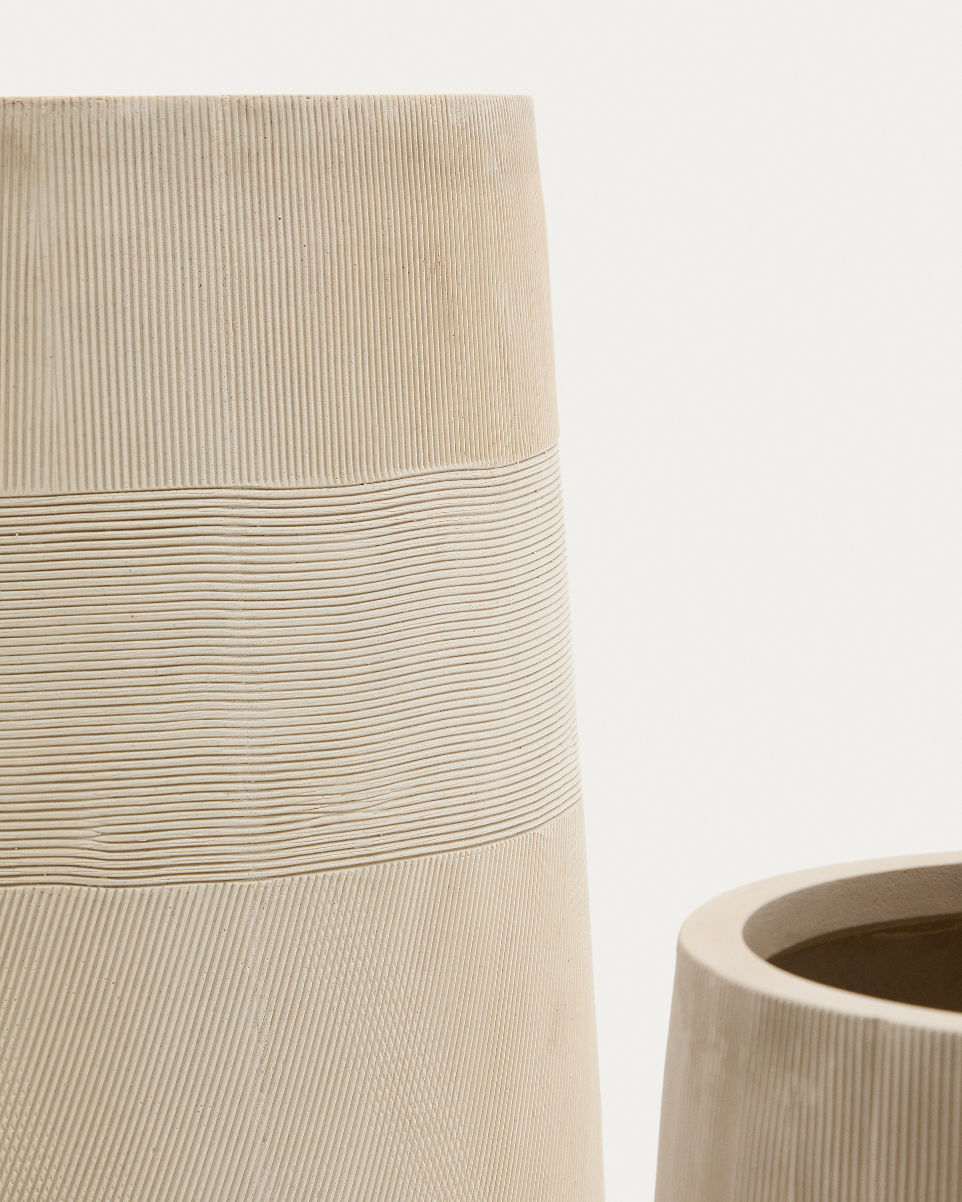 • Poly-cement is a material made of resin and stone dust that imitates the finish of cement, offering high resistance and lightness.