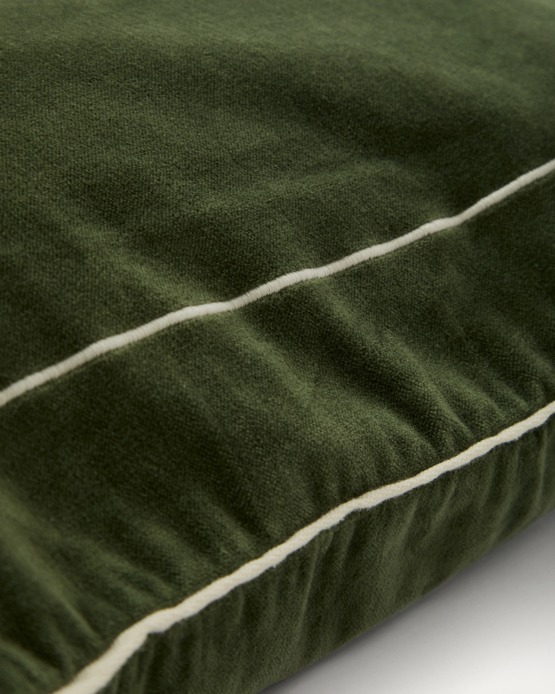 Tivani green embroidered velvet cushion cover with contrasting trim 45 x 45cm