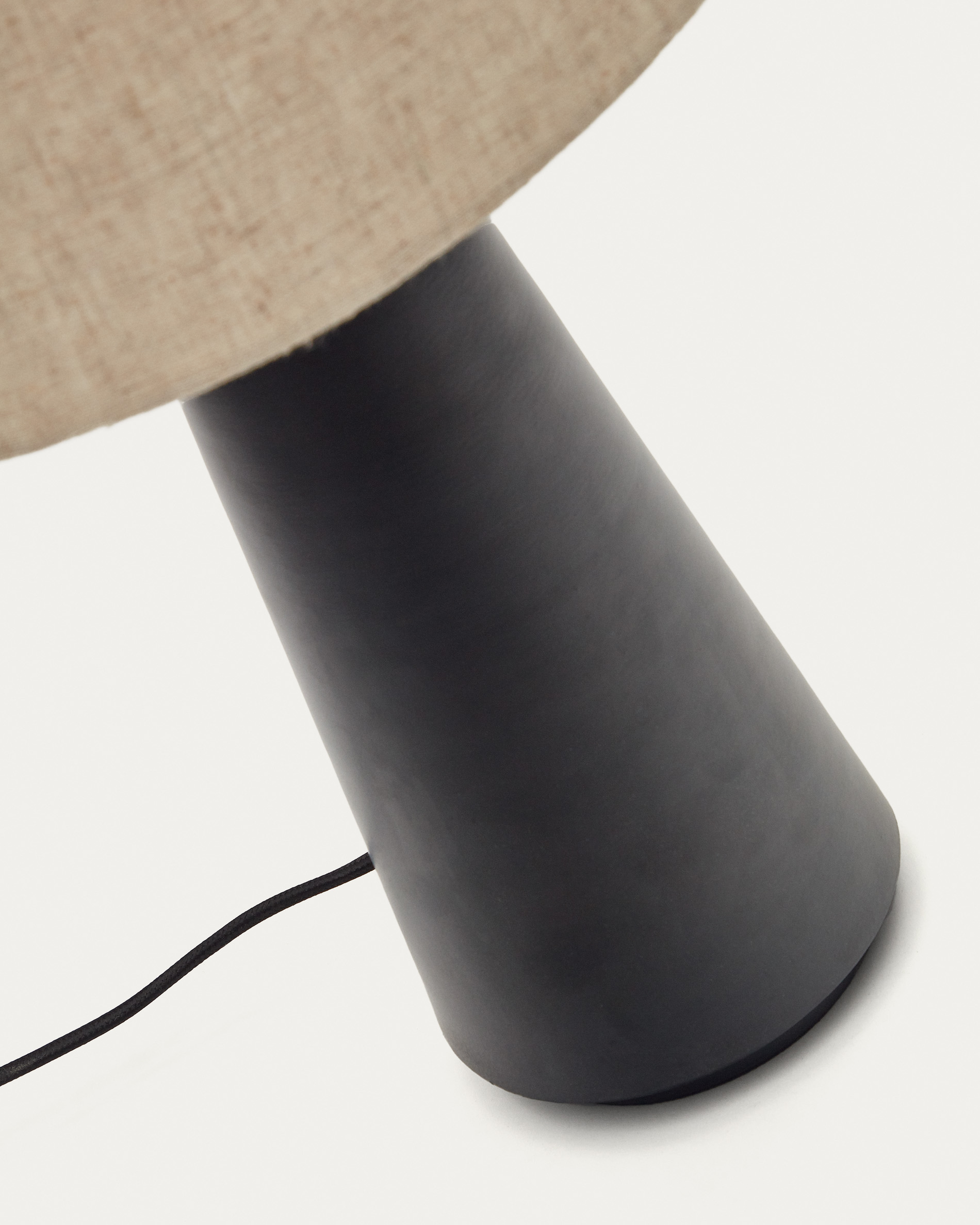 • Metal table lamp with painted black finish and linen shade.