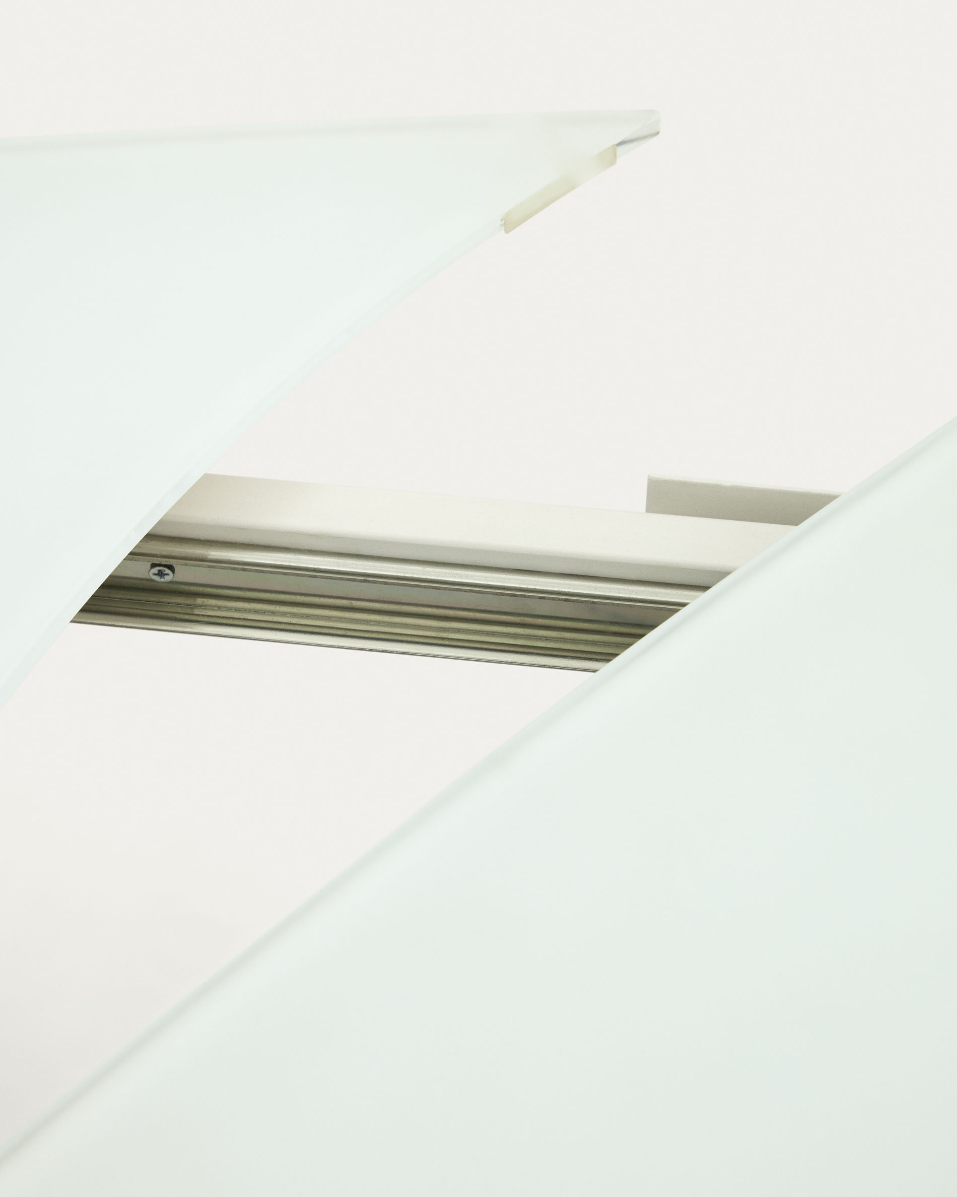 Yodalia extendable round table in glass and MDF with steel legs in white, 130 (190) x 100 cm