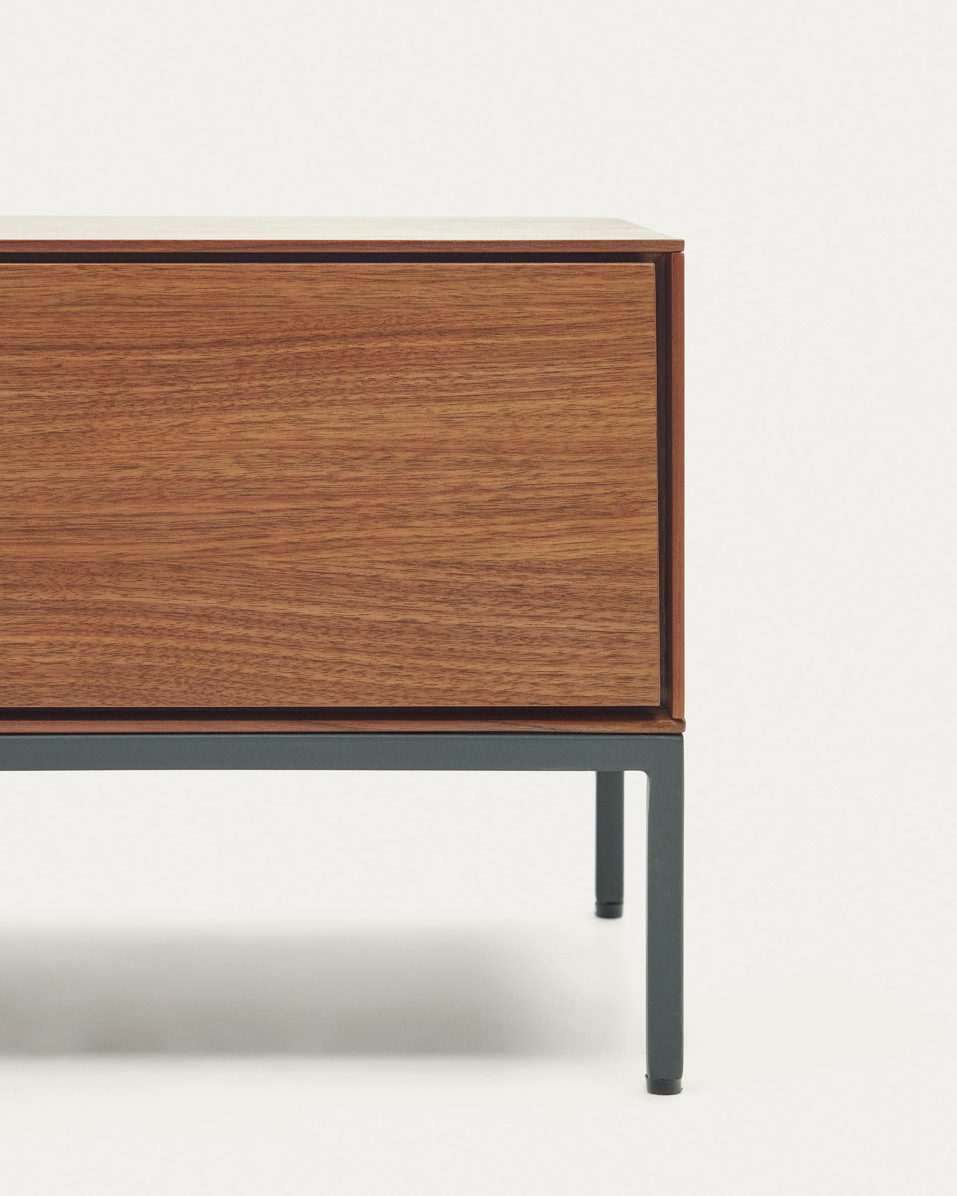 Vedrana 3 drawer TV stand in walnut veneer with black steel legs, 195 x 35 cm