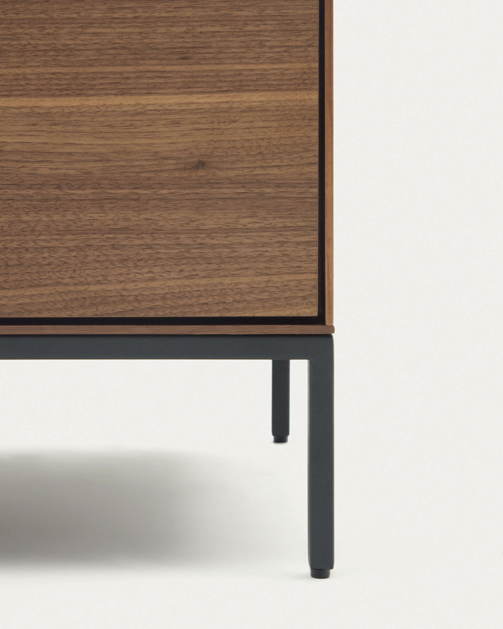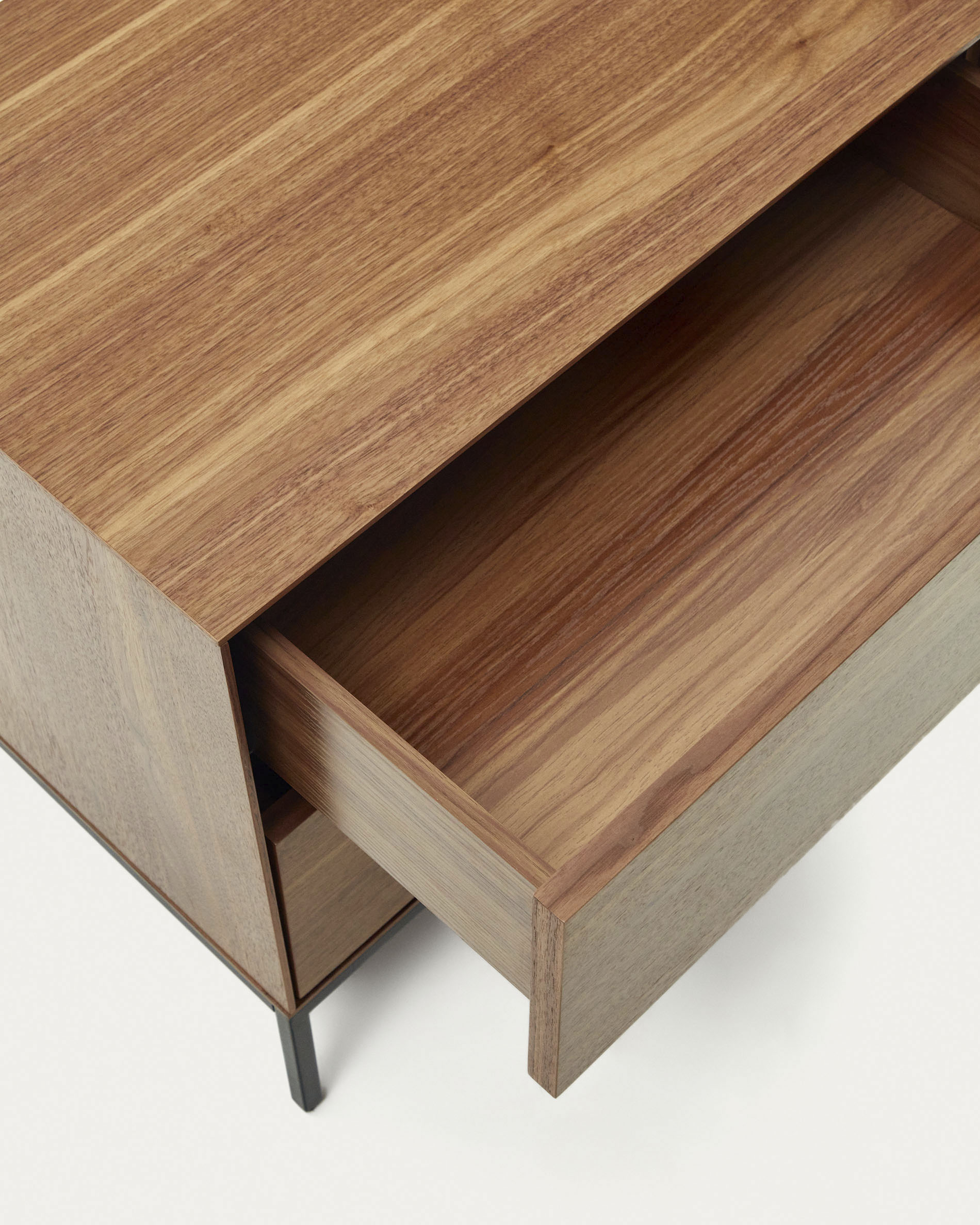 Vedrana bedside table, 2 walnut veneer drawers, and black steel legs, 60 x 55 cm