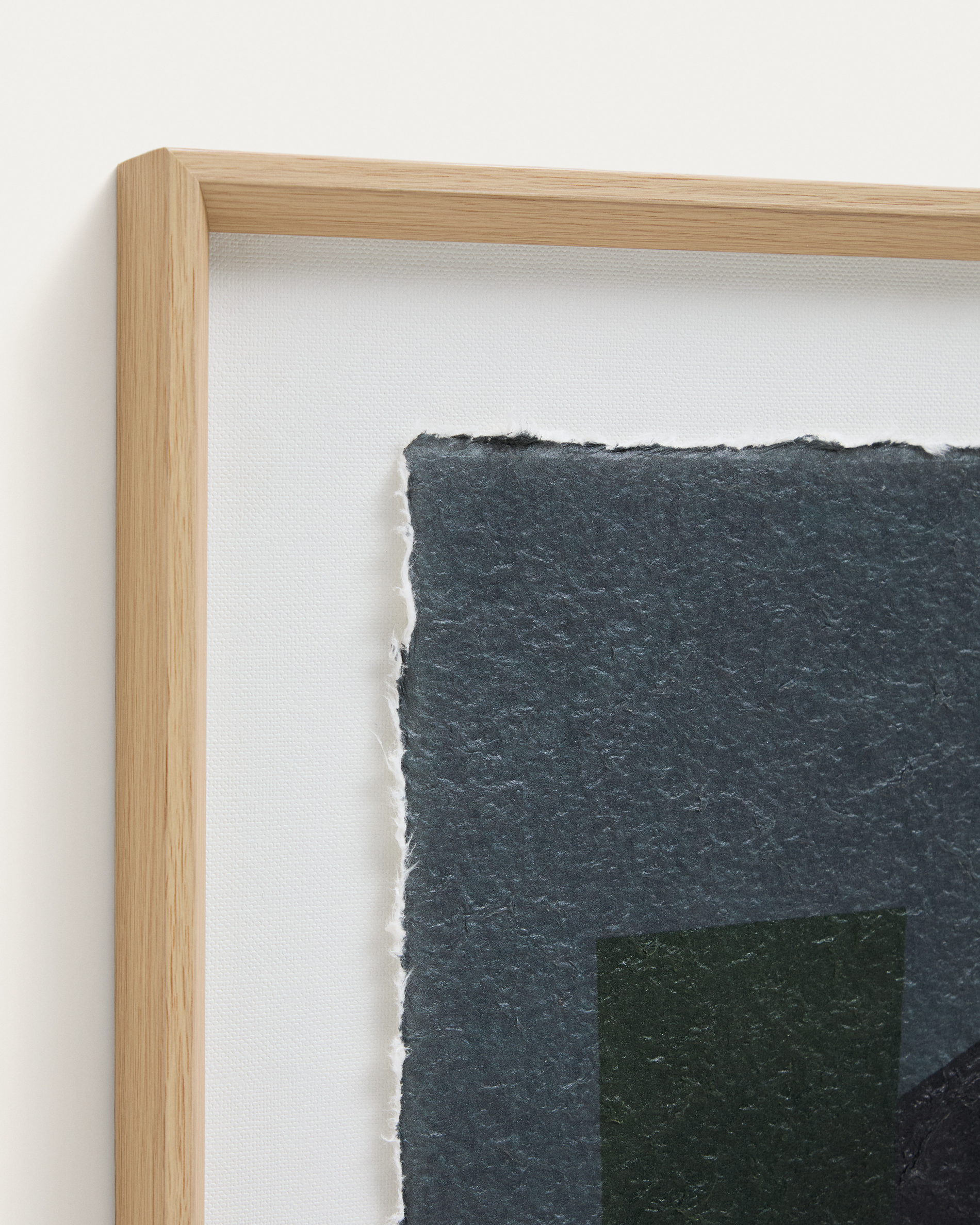 This painting is inspired by the cubist style and architecture of the mid-century period. It brings depth and character to any environment thanks to the combination of geometric shapes and a palette of grey and burgundy tones. In this design, architecture is deconstructed and synthesised to reflect it in a unique artistic piece, where the superimposition of planes and the play of transparencies create a visual effect that invites contemplation and adds a touch of contemporary sophistication. Printed on recycled paper, every detail and texture enhances the artistic quality of the work. The clean-lined frame provides visual lightness and allows the work to stand out on its own, blending in easily with different decorative styles.