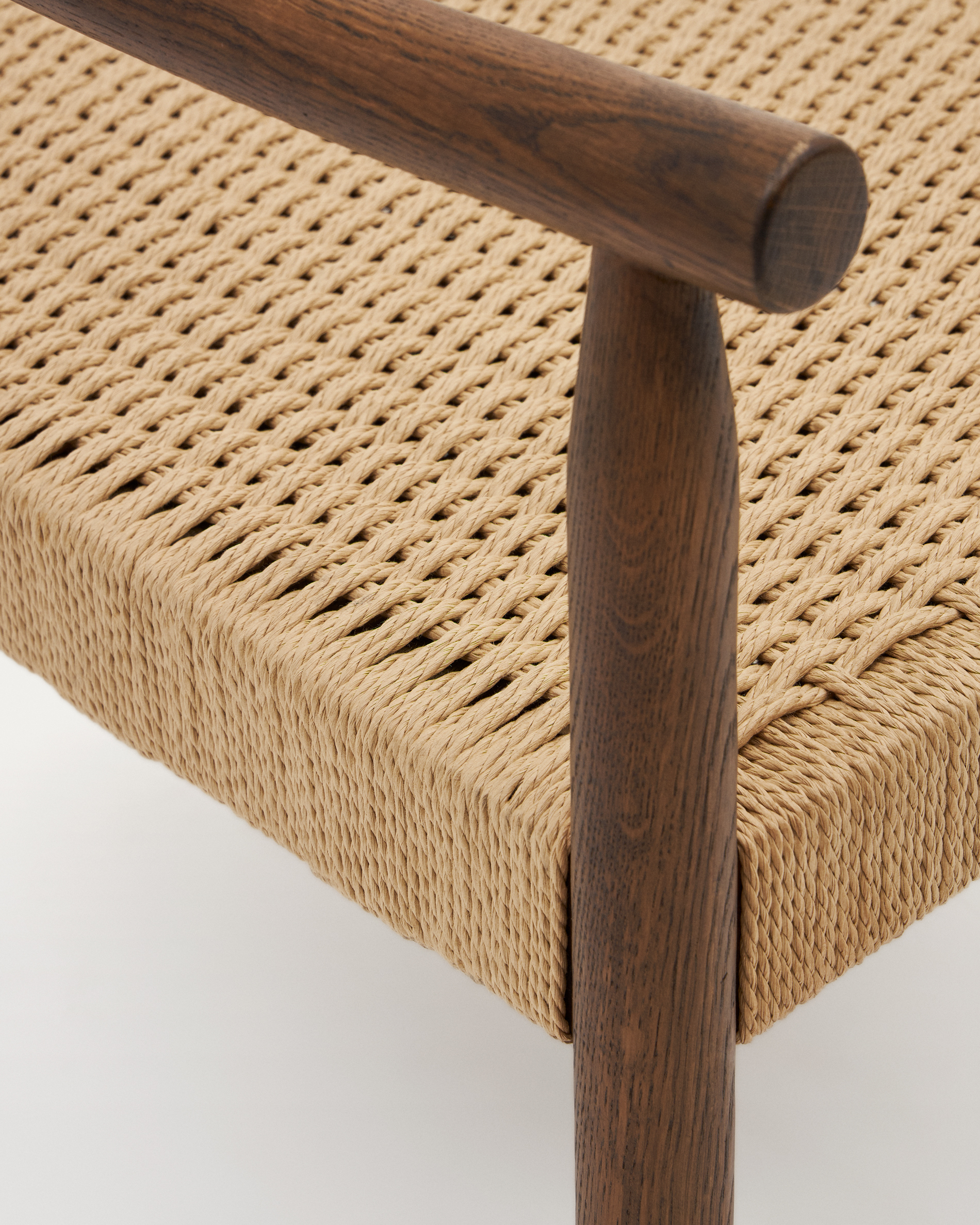 Yalia armchair in solid oak with a walnut finish and paper rope seat FSC 100%