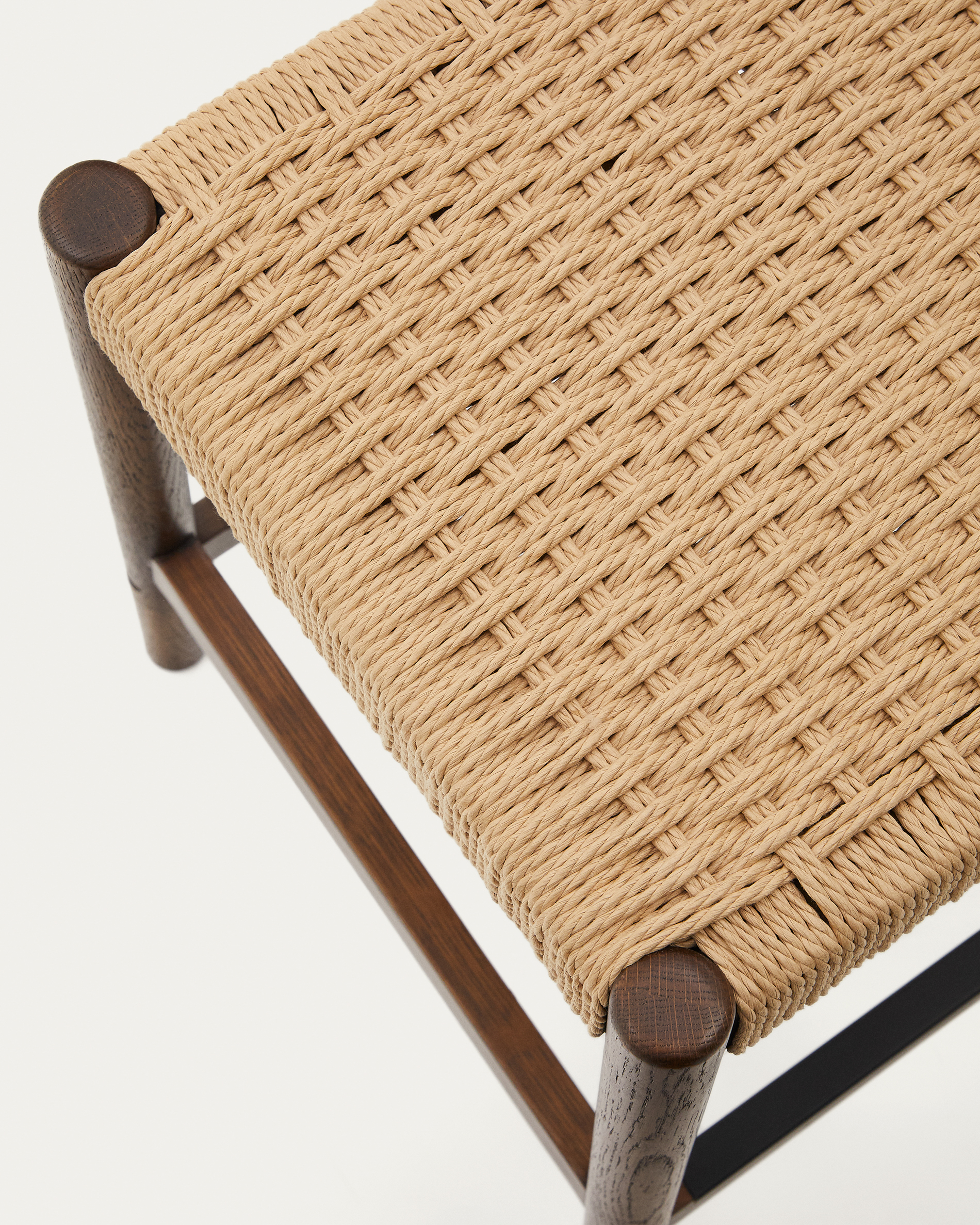 Yalia stool in solid oak wood in a walnut finish and rope cord, height 65 cm FSC 100%