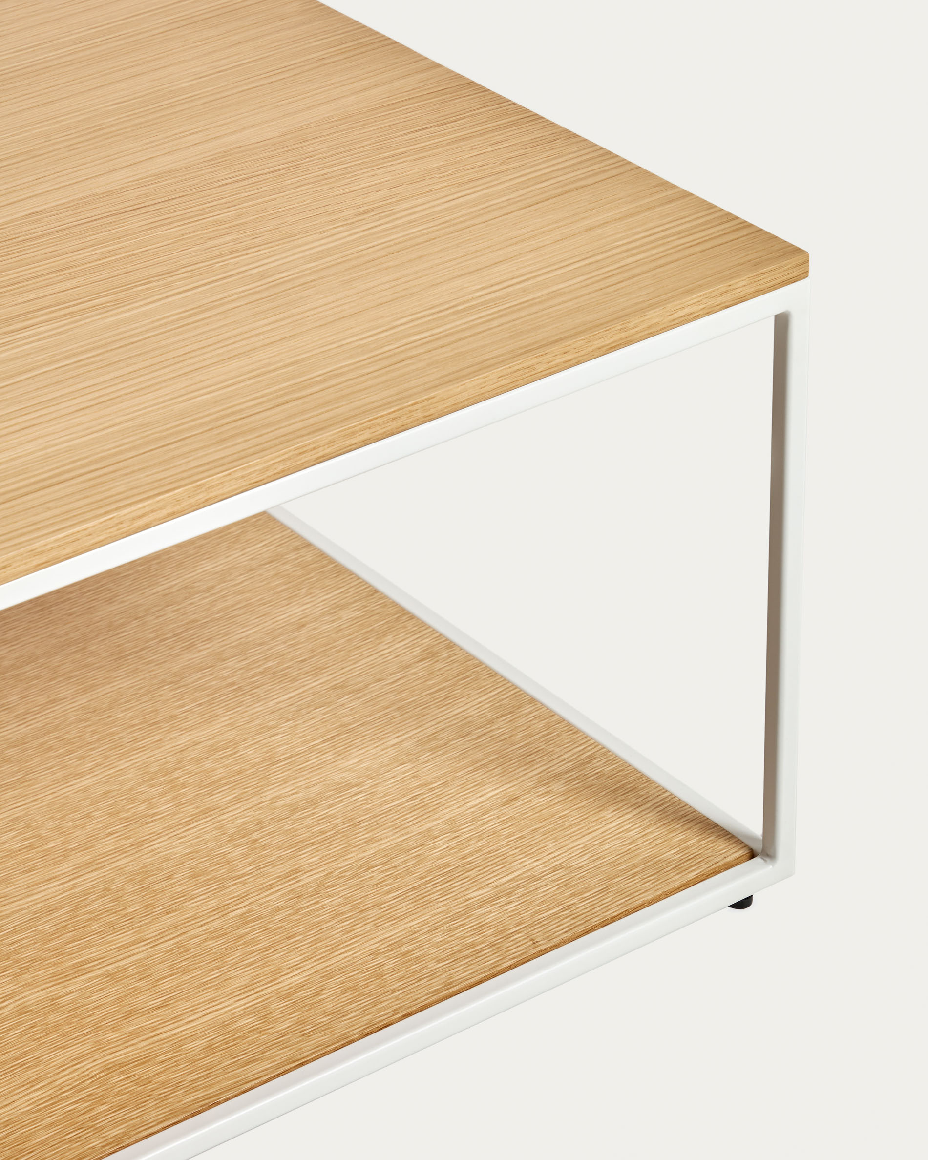 Yoana coffee table with oak veneer table top and base, white metal structure, 110 x 60 cm