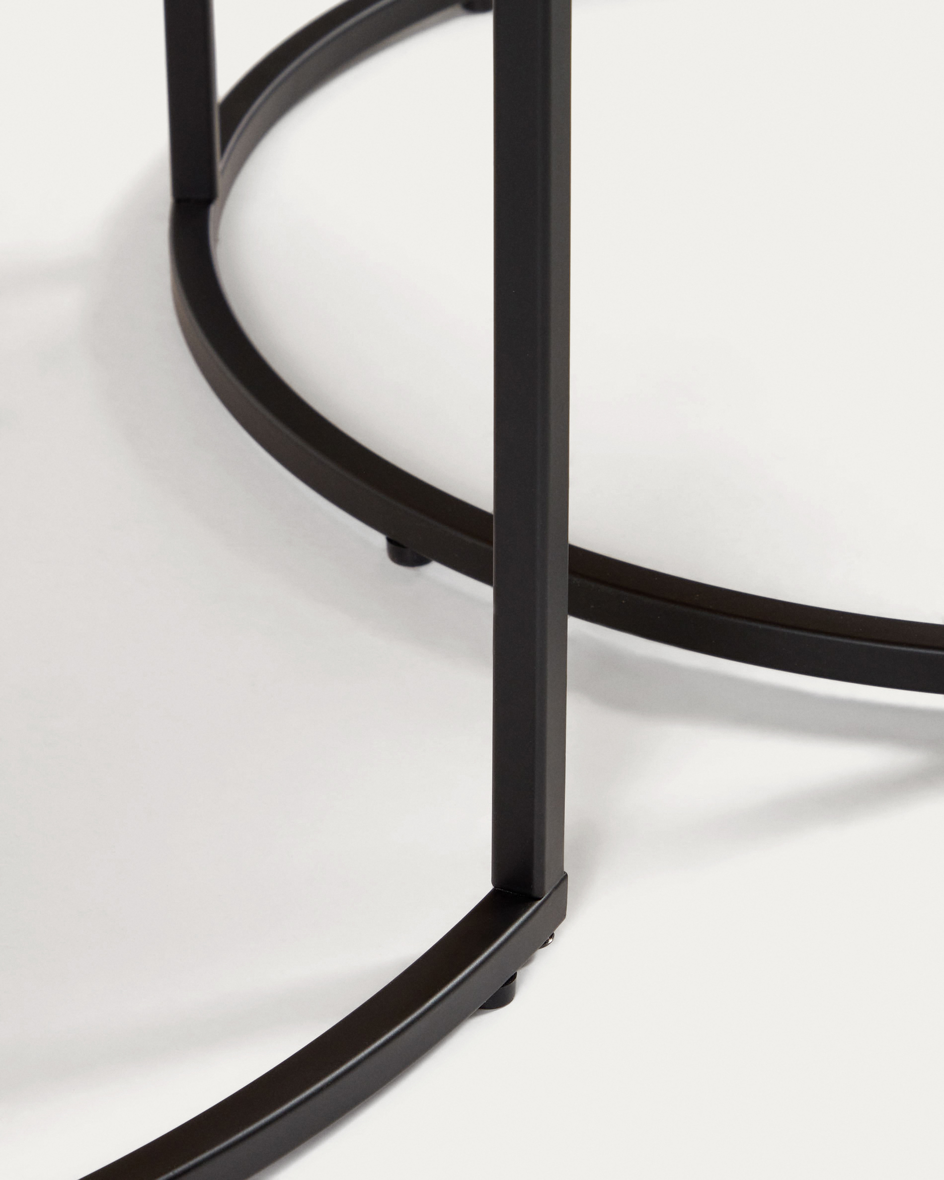 Yoana set of 2 nesting side tables with walnut veneer and black metal, Ø 80 cm / Ø 50 cm