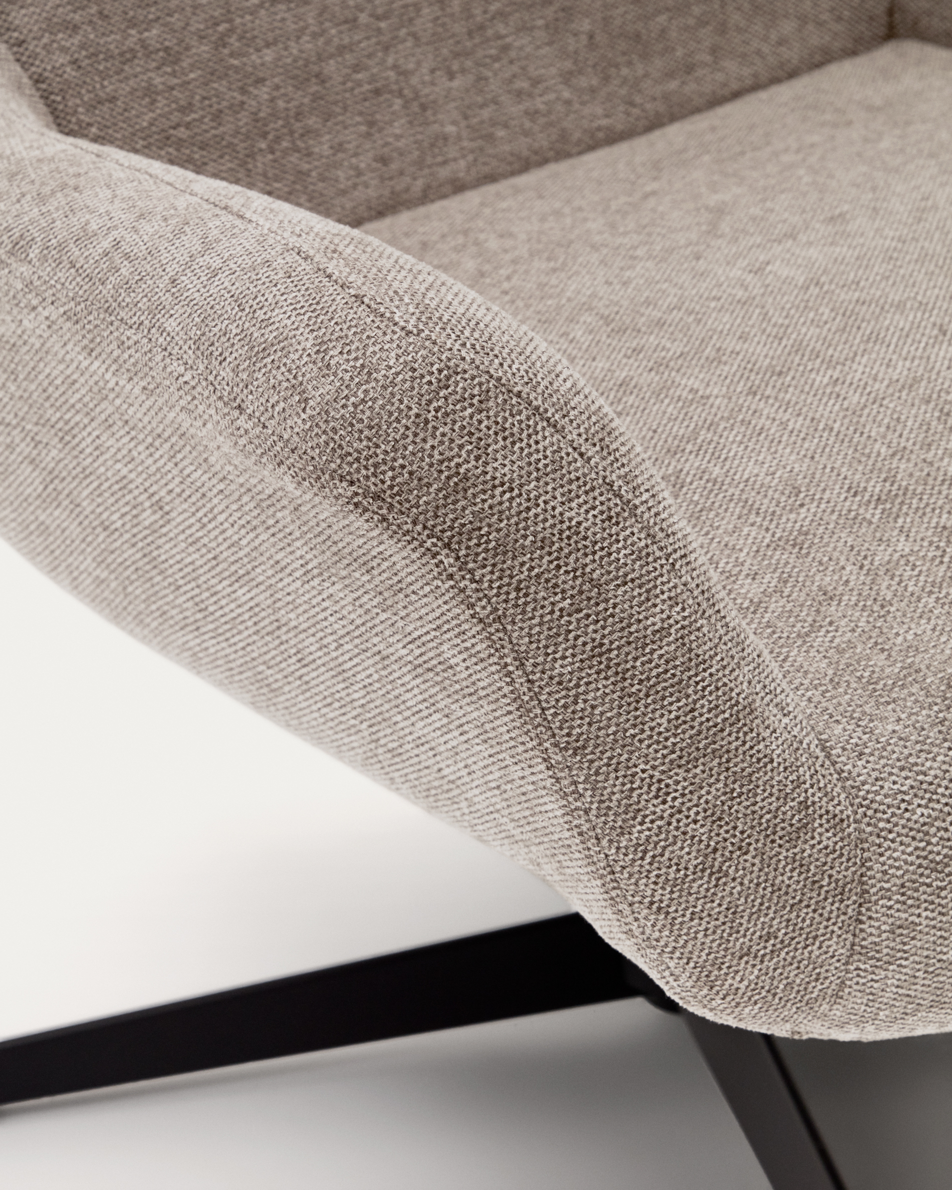 Zalina swivel armchair in beige chenille and steel with black finish FSC 100%