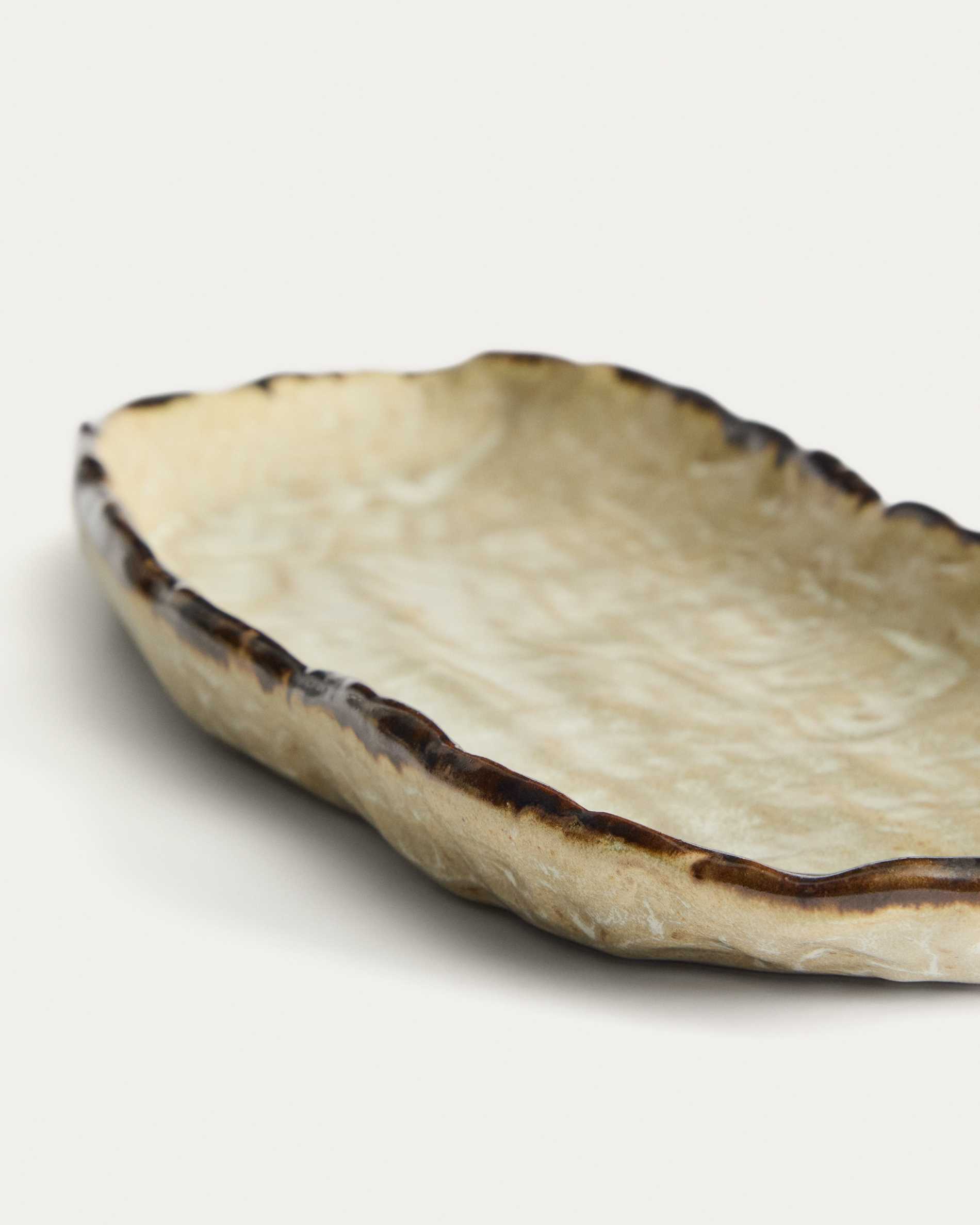 Az Abela kollekció organikus, szabálytalan formáiról ismert, amelyek egyedi és kortárs hangulatot kölcsönöznek az asztalnak. A mázas felületnek köszönhetően minden darab saját árnyalatokkal és textúrákkal rendelkezik, így nincs két egyforma. A barna befejezés és a finoman hullámos szegély növeli jelenlétét és vizuális mélységet ad bármilyen tálalásnak.