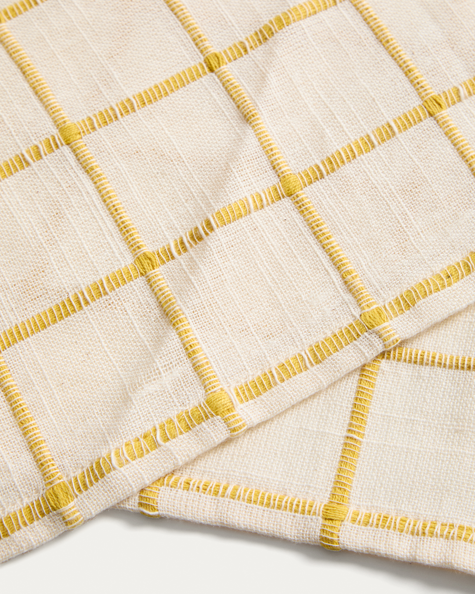 Adesta asztali futó 100% pamut ecru sárga kockás mintával 50 x 150 cm
