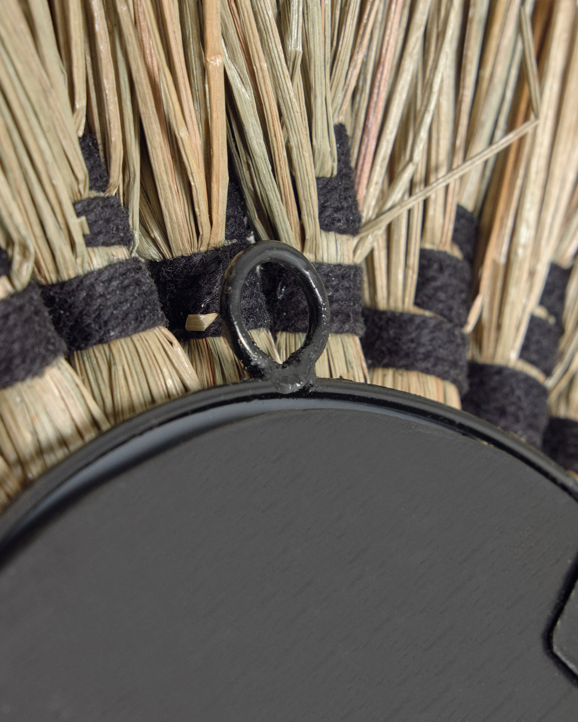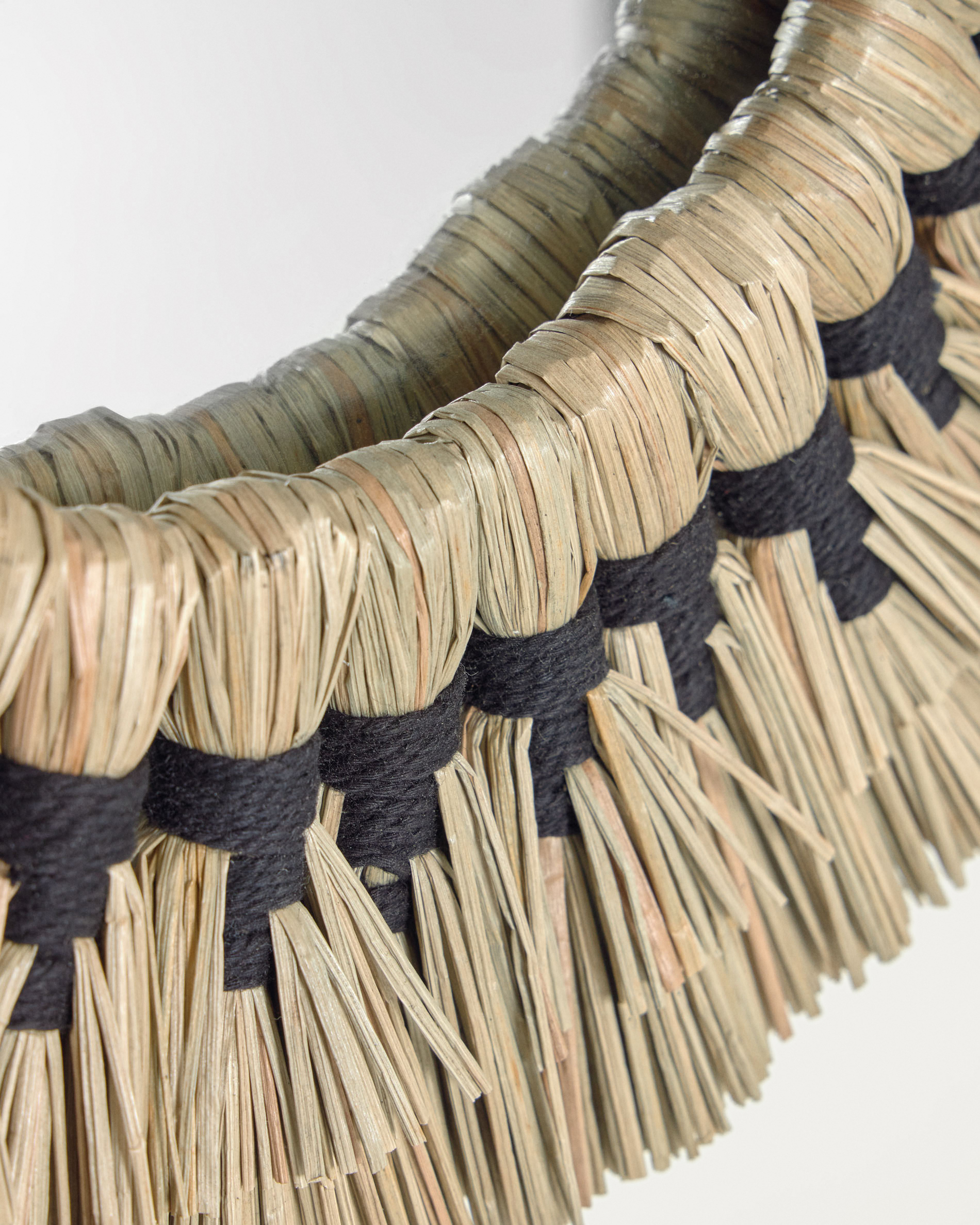 • Mendong szálakból készült keret natúr befejezéssel, fekete pamutszálakkal szőve