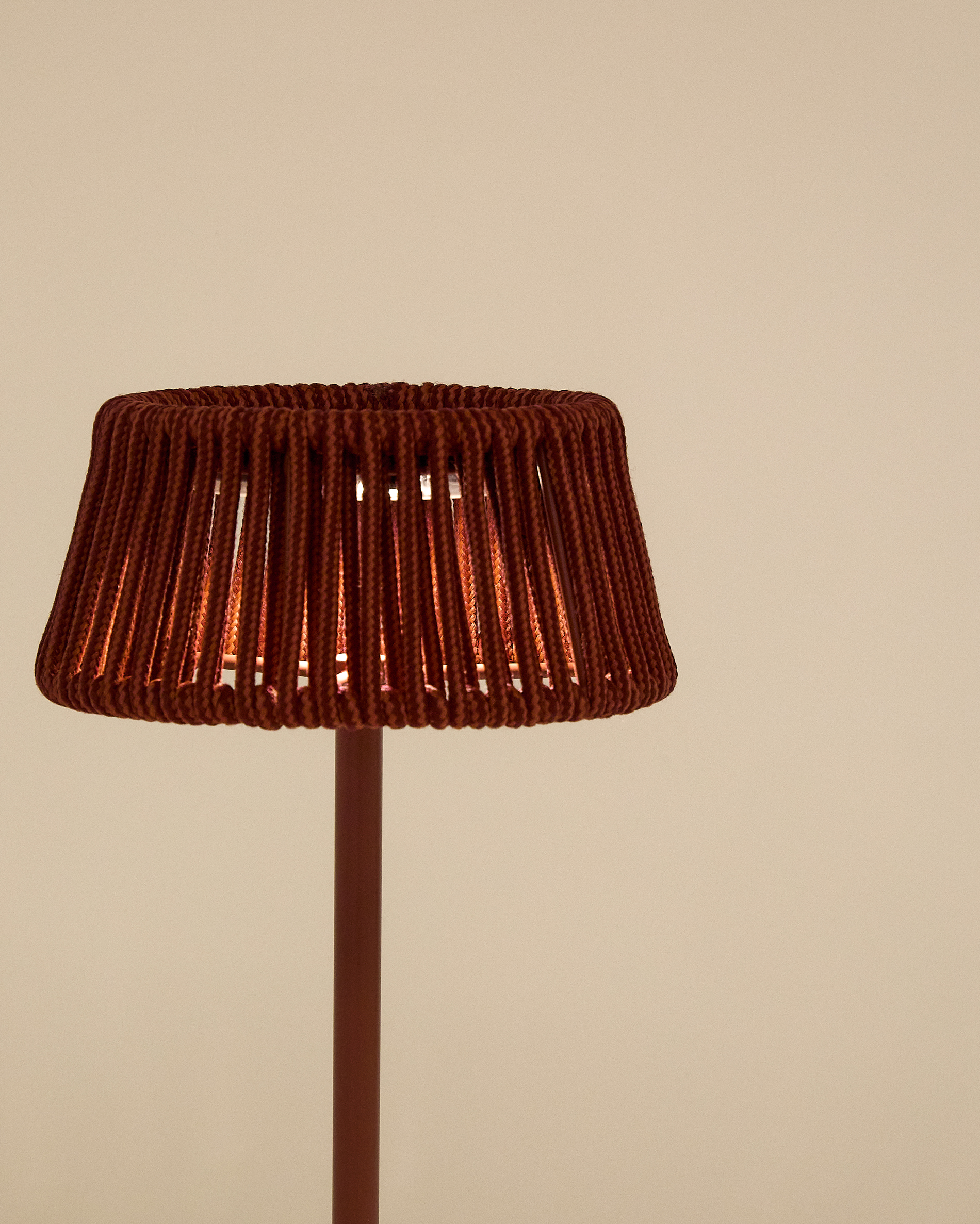 • Hordozható napelemes asztali lámpa terrakotta mozaikos kötélkábellel árnyékkal.