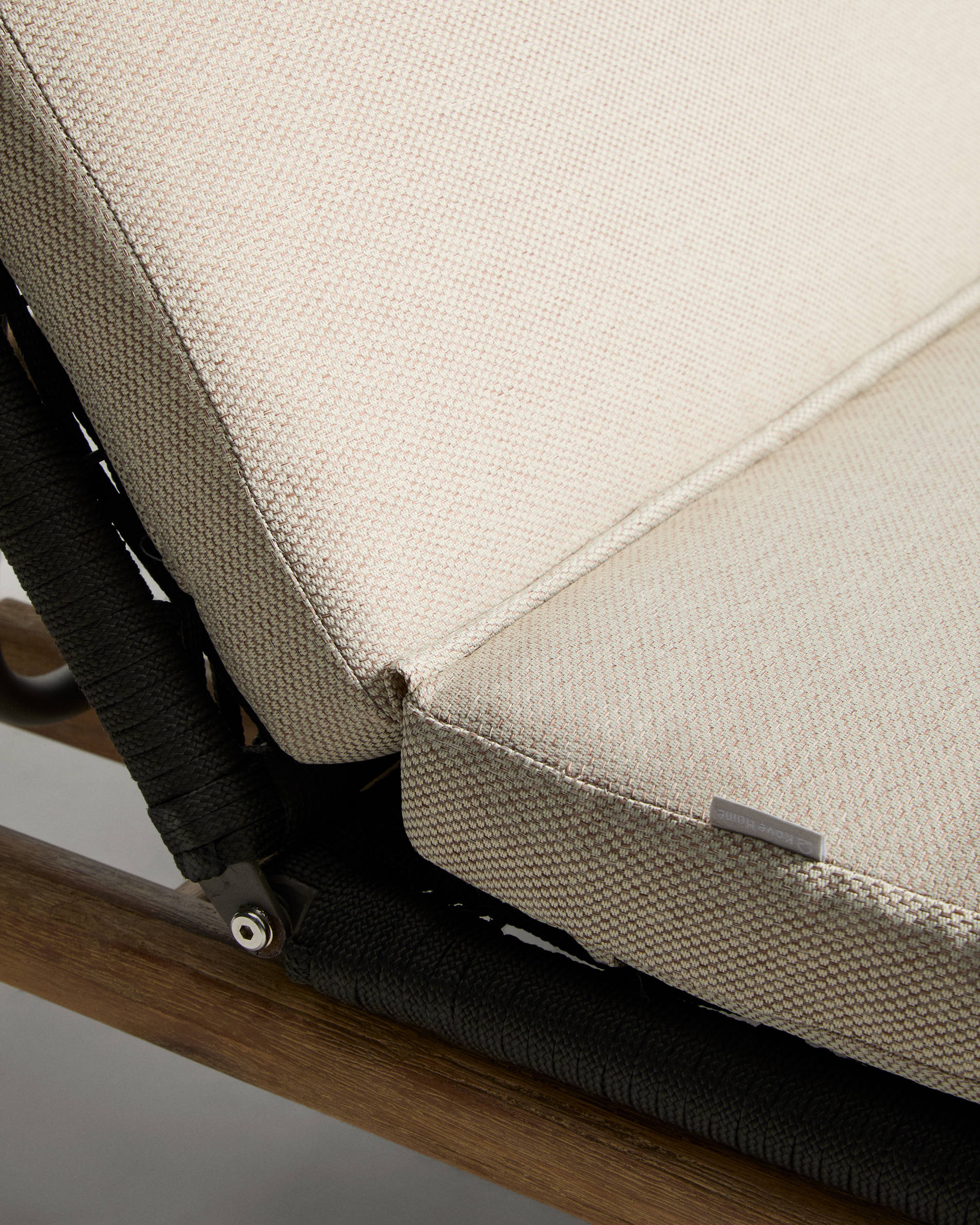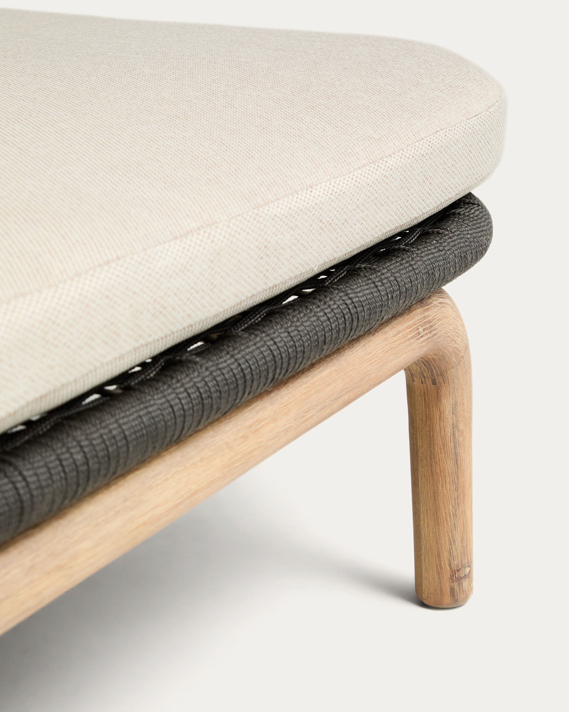 • Tömör acáciafából és kézzel szőtt kötélből készült napozóágy. Levehető párnákat tartalmaz. Esős napokon javasolt tárolni.