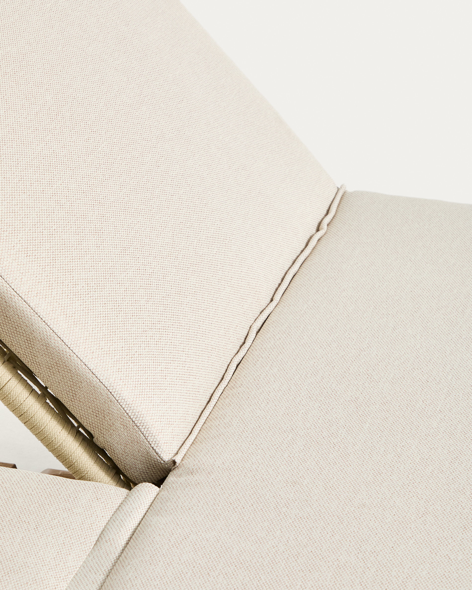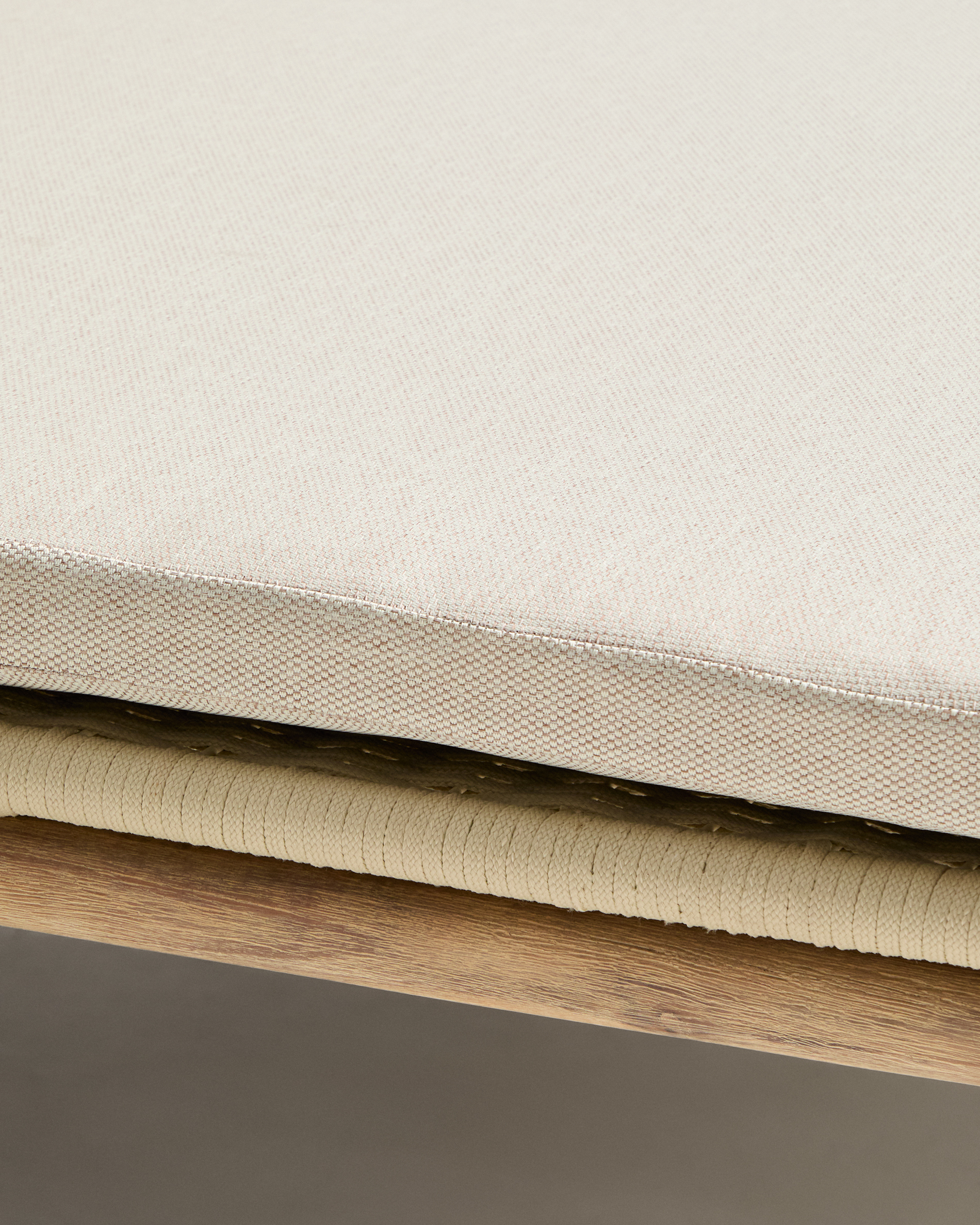 • Tömör acáciafából és kézzel szőtt kötélből készült napozóágy. Levehető párnákat tartalmaz. Esős napokon javasolt tárolni.