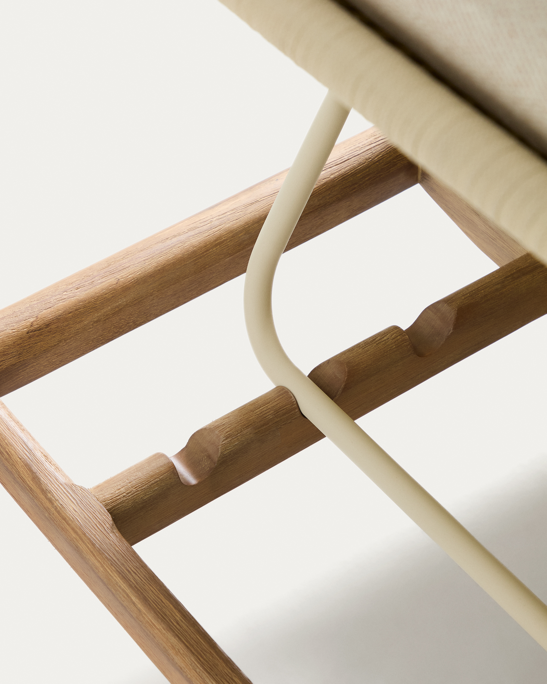 • Napozóágy tömör akácfából és kézzel kötött kötél kötélből. Levehető párnák. Esős napokon javasolt tárolni.