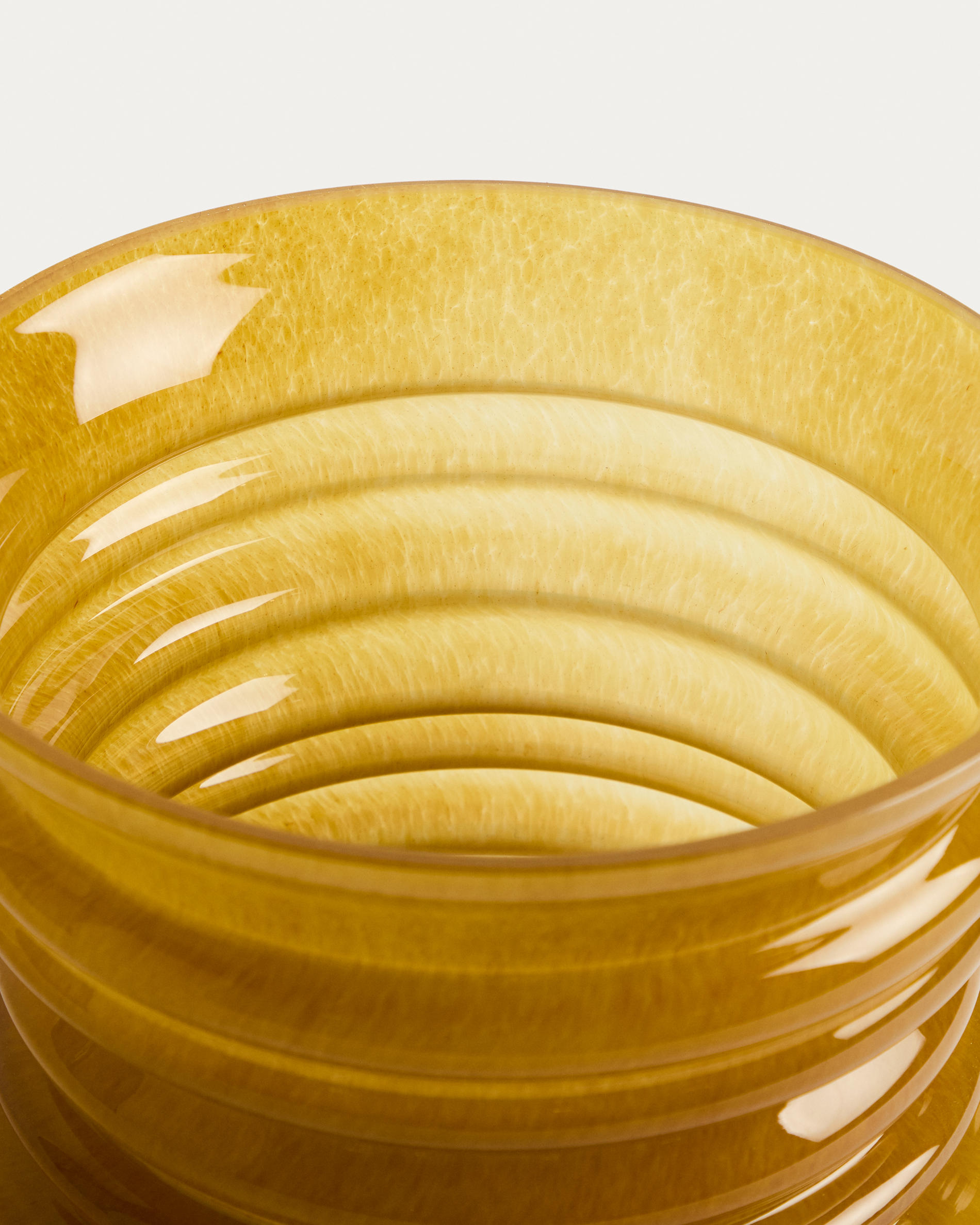 Az Ambere váza kiemelkedik a reliefszerű gyűrűkkel, amelyek a felületén futnak, ritmust adva a dizájnnak. Tömegszínezett üvegből készült, amelybe a színt közvetlenül az anyagba építették, így egységes és tartós árnyalatot érve el. Dekoratív darab, meghatározott vonalakkal és szilárd jelenléttel, amely különböző terekhez és stílusokhoz illik.
