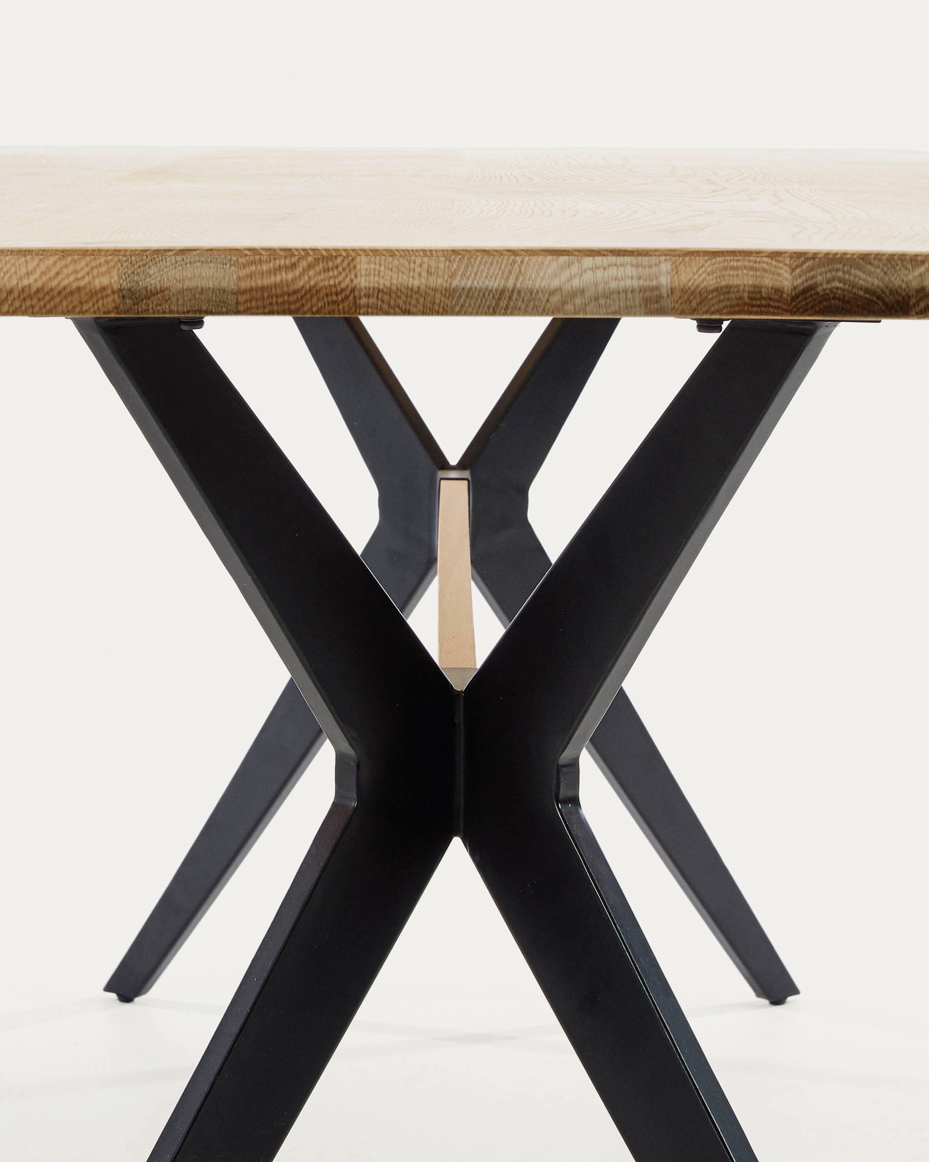 Amethyst tölgyfa furnéros asztal fehérített felülettel és fekete acél lábakkal, 160 x 90 cm