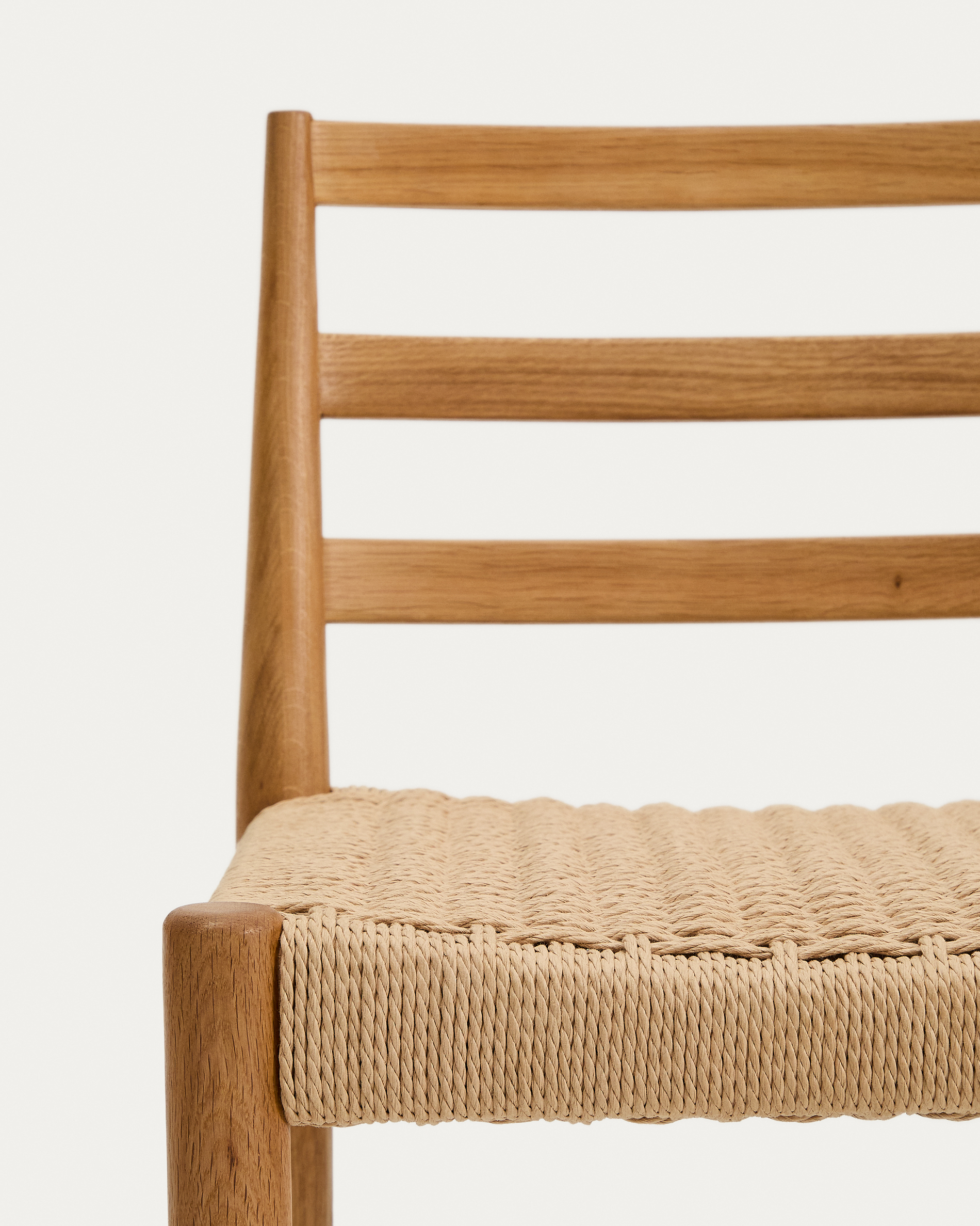 Analy bárszék háttámlával tömör tölgyfa, natúr színű felülettel és kötél ülőkével 65 cm FSC 100%.