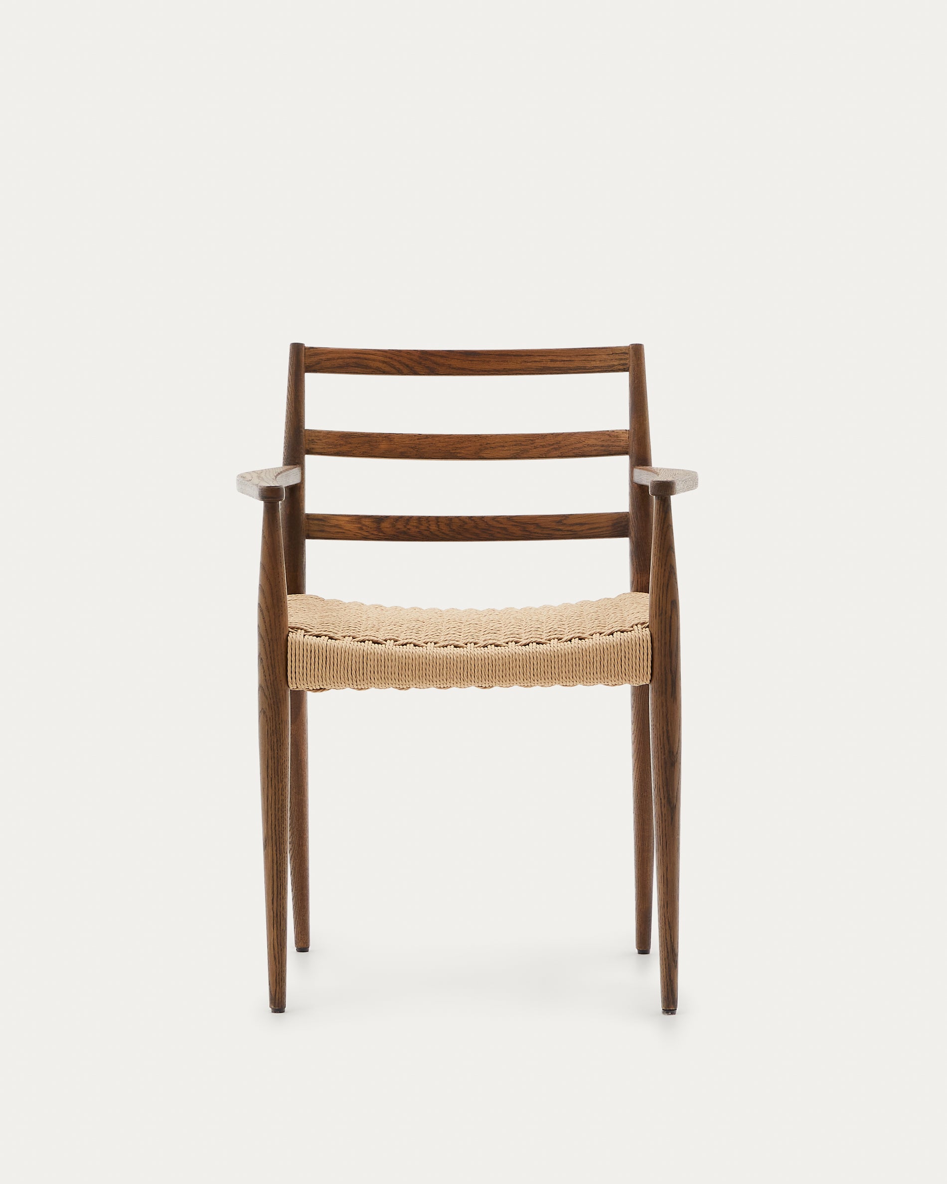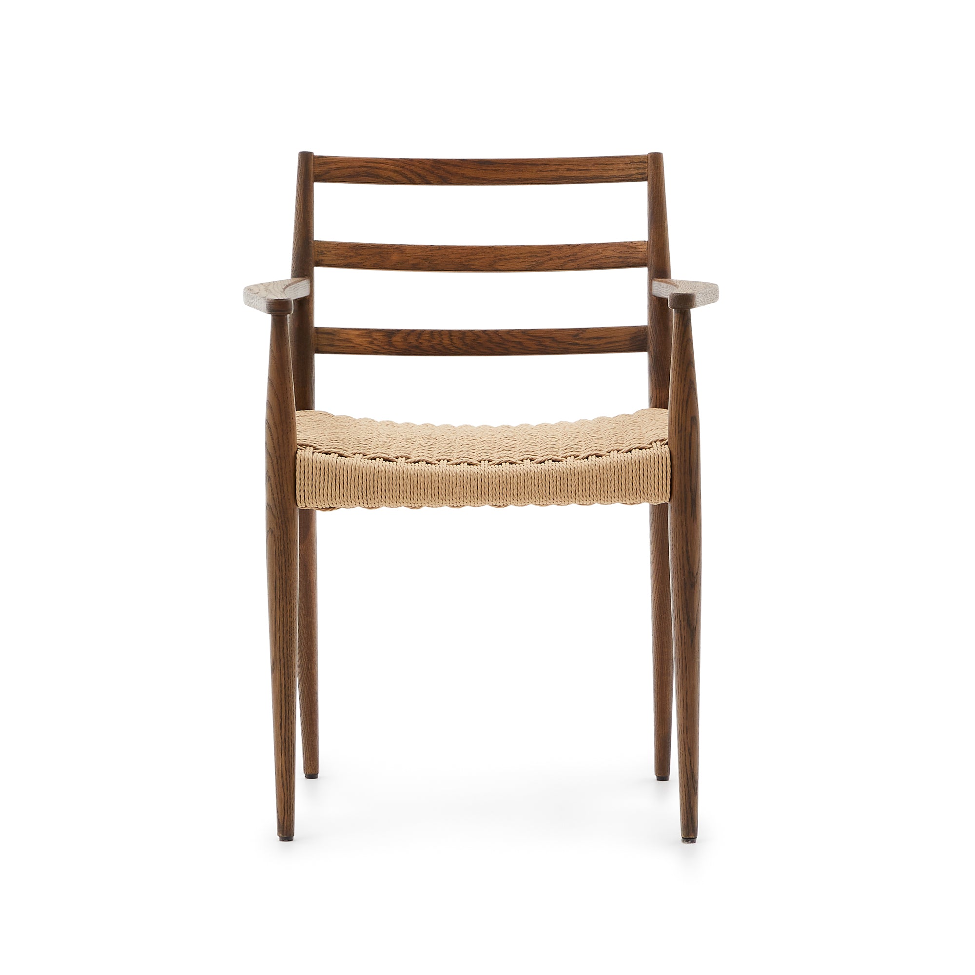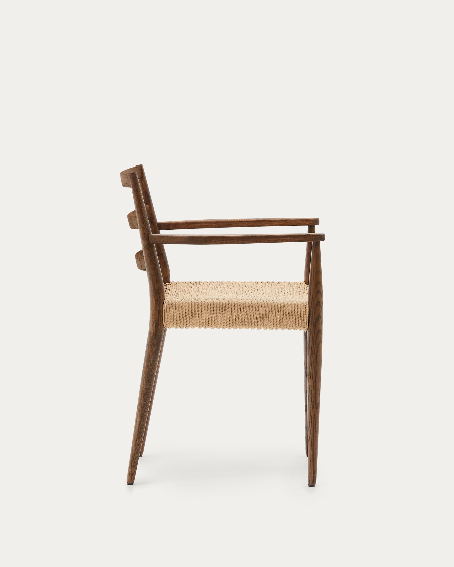 Analy szék karfával, tömör tölgyfa szerkezetben, diófurnér felülettel és kötélkord székpaddal FSC 100%