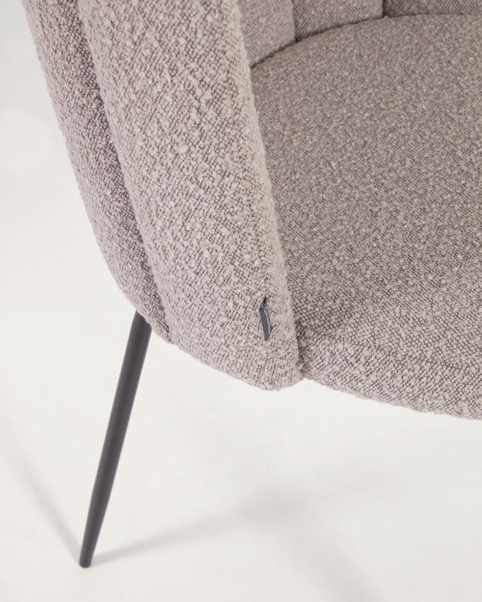 Aniela szék szürke bouclé és fém lábakkal fekete felülettel