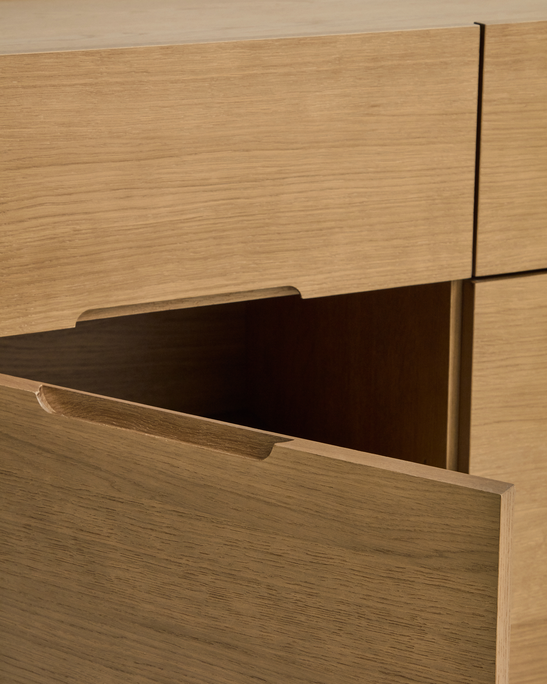 Anyagok: 75% Ragasztott forgácslap E0, 10% Bükkfa (Fagus Sylvatica), 10% Tölgy vékér (Quercus alba), 5% Melamin