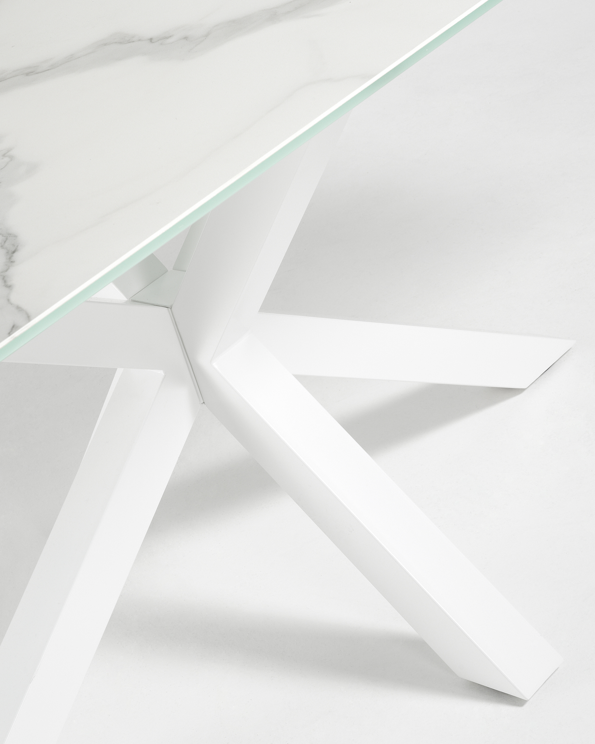 Argo asztal fehér Kalos porcelánnal és acél lábakkal fehér felülettel, 160 x 90 cm