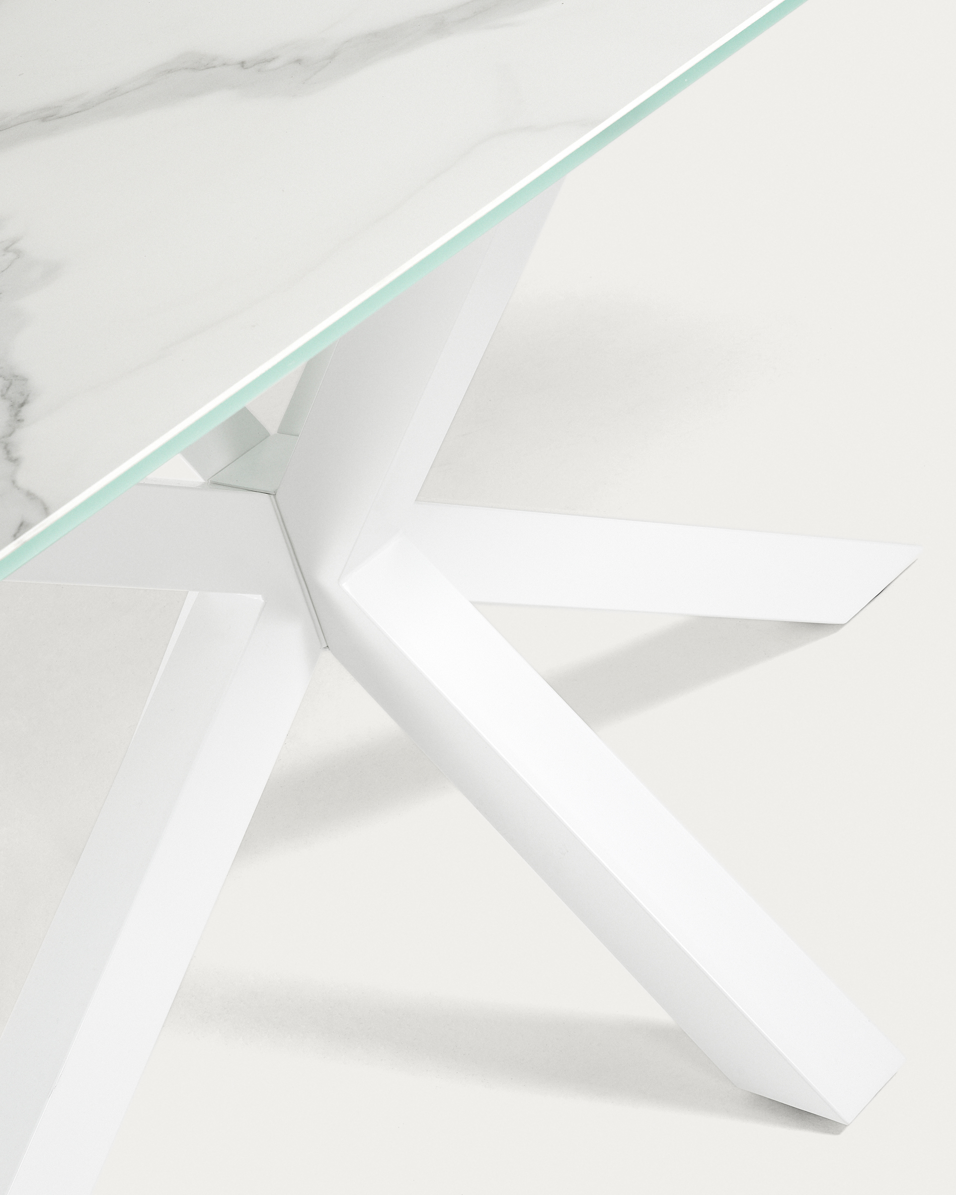 Argo asztal fehér Kalos porcelán és acél lábakkal fehér felülettel, 180 x 100 cm