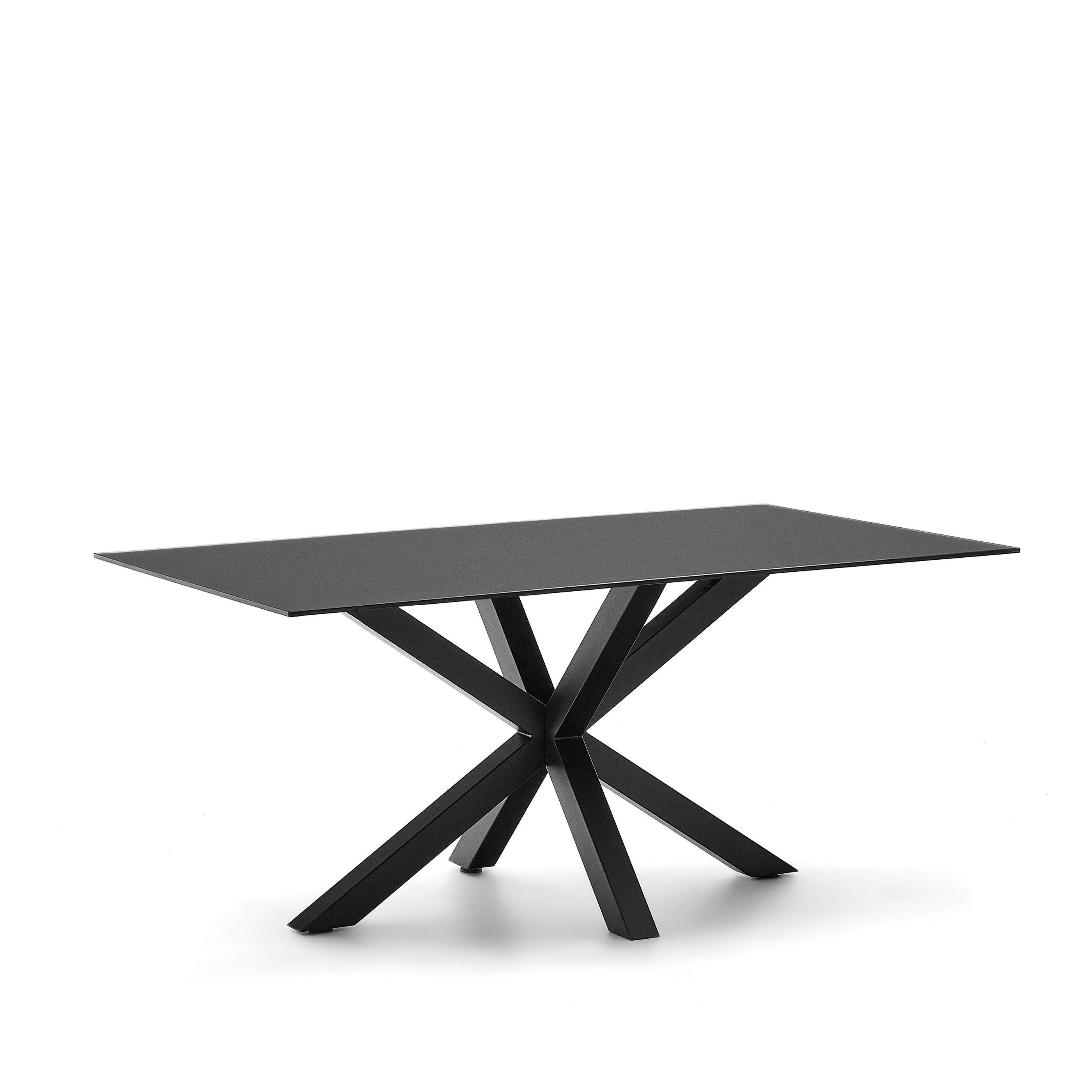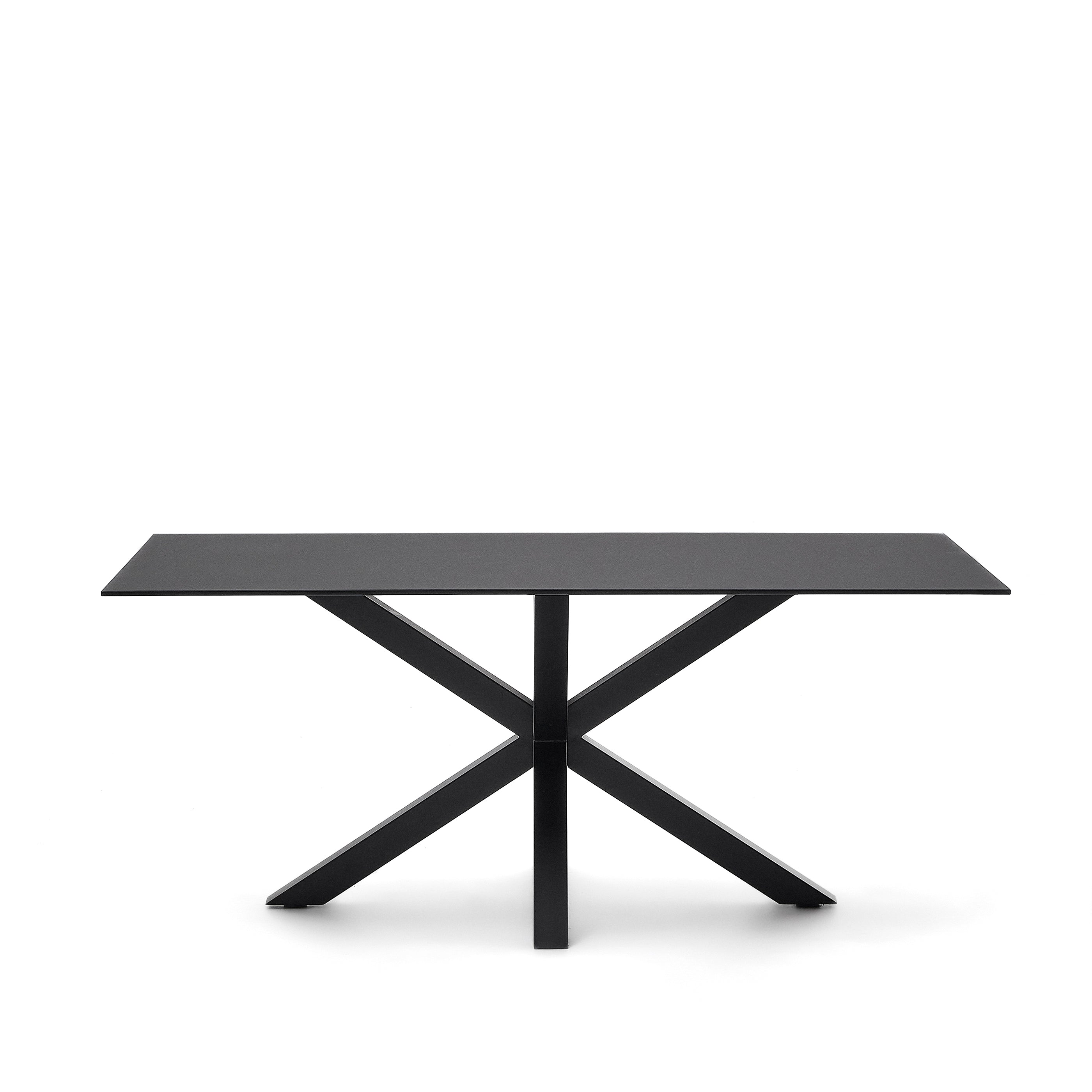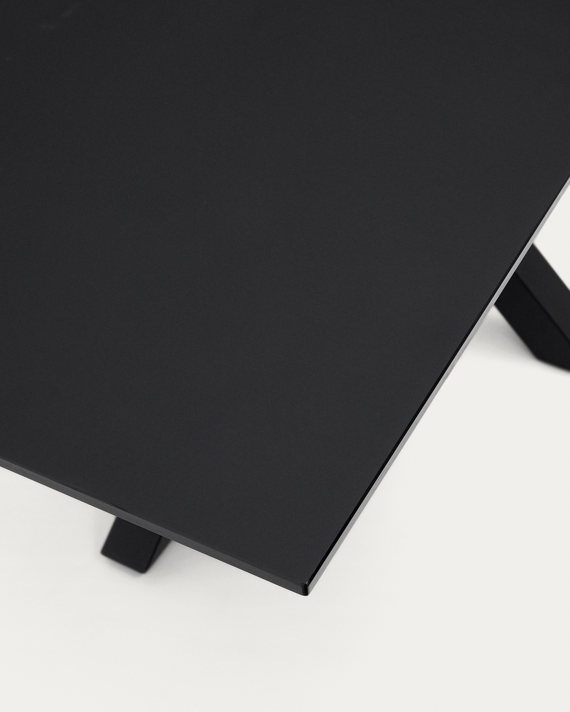Argo asztal fekete üveg és fekete acél lábakkal 200 x 100 cm