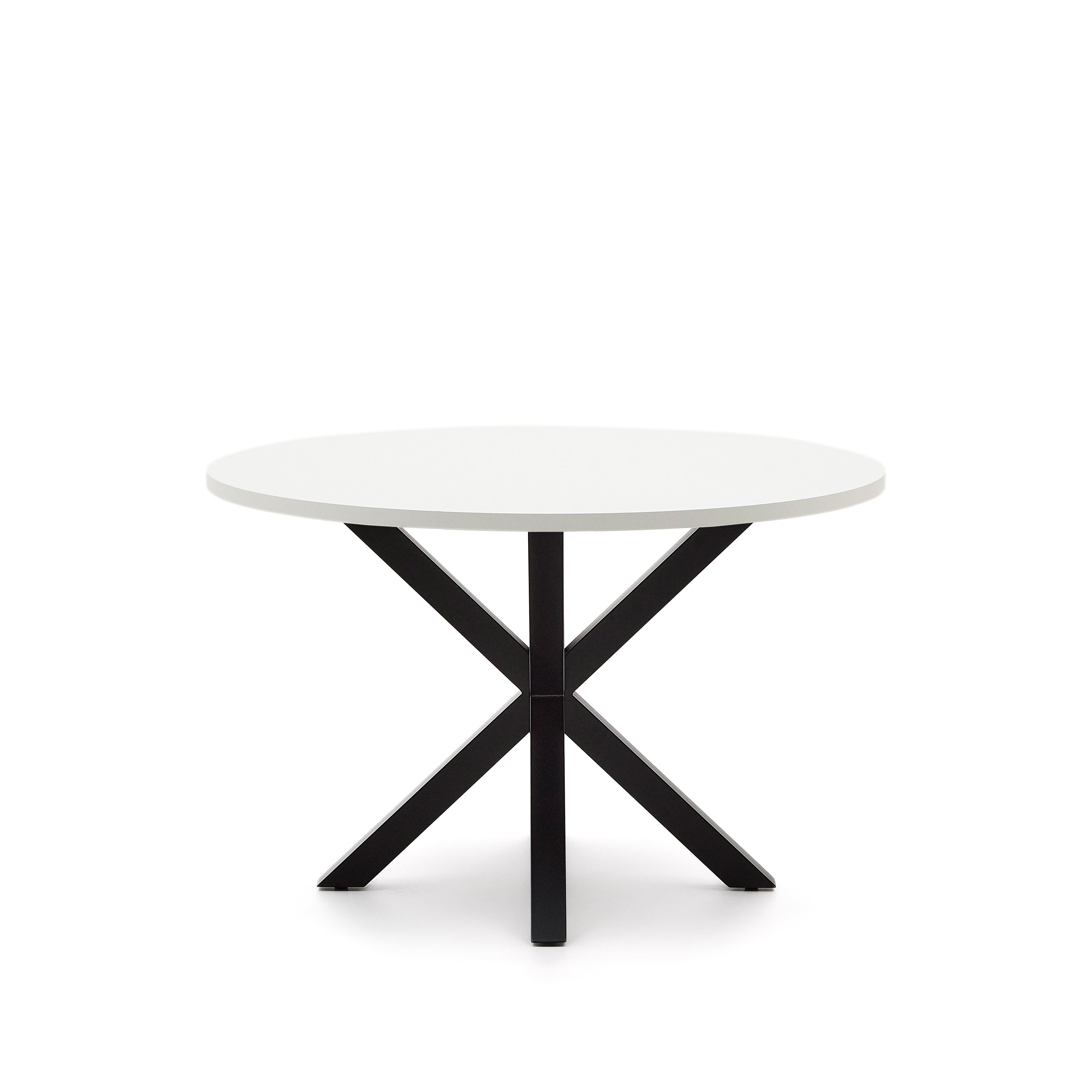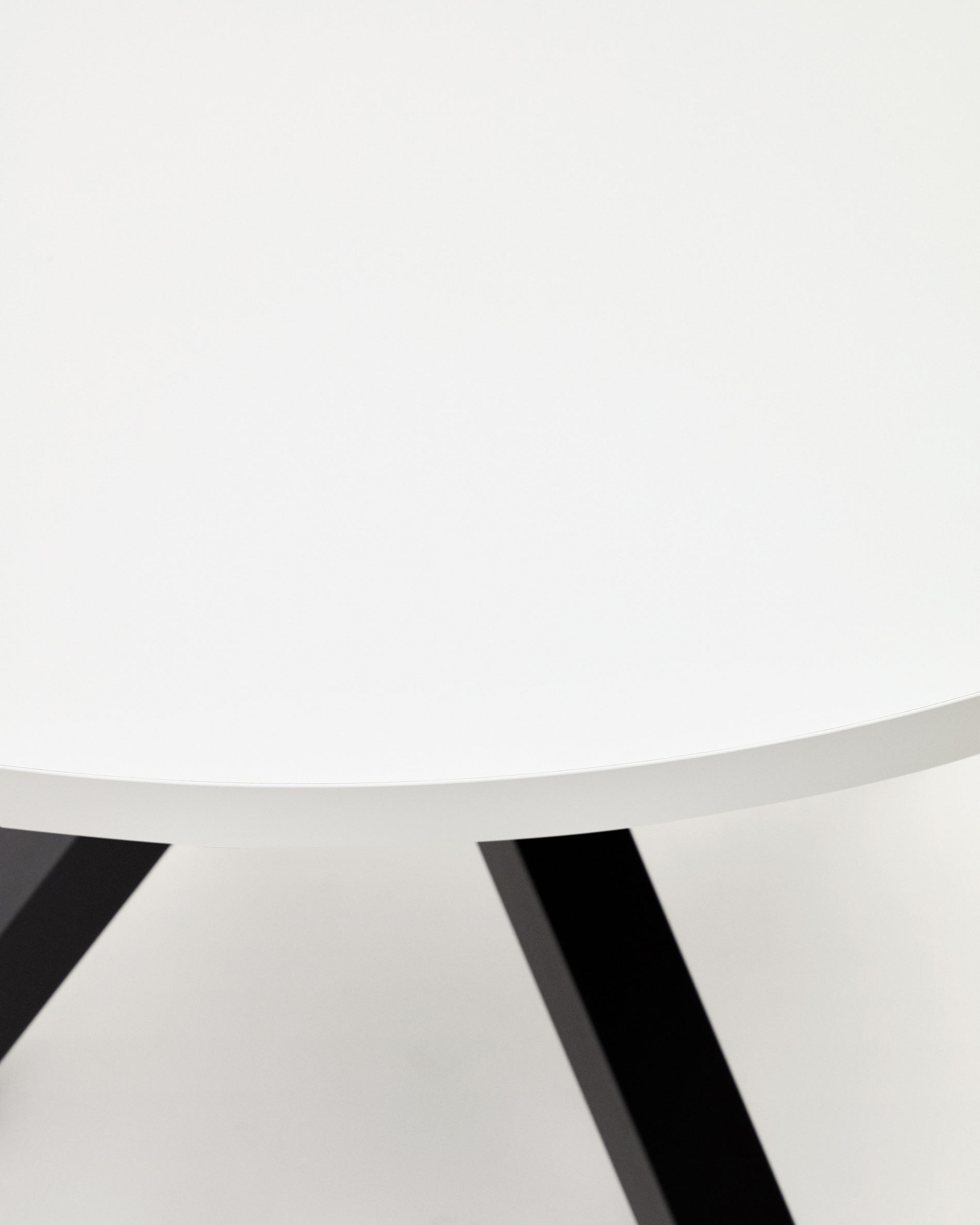 Argo kör alakú asztallap fehér melamin és fekete acél lábakkal Ø 120 cm