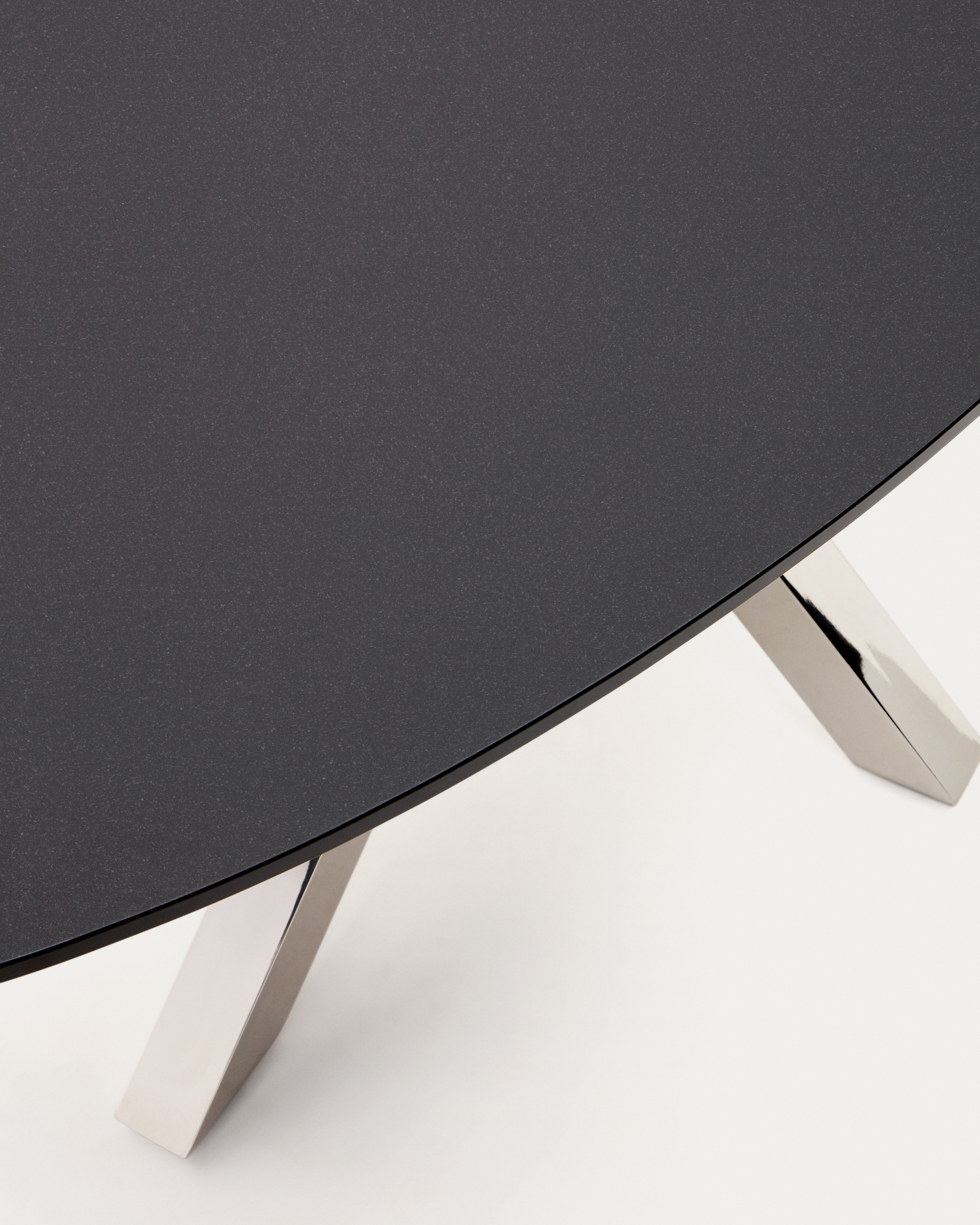 Argo ovális asztal matt fekete üveg és rozsdamentes acél lábakkal Ø 200 x 100 cm