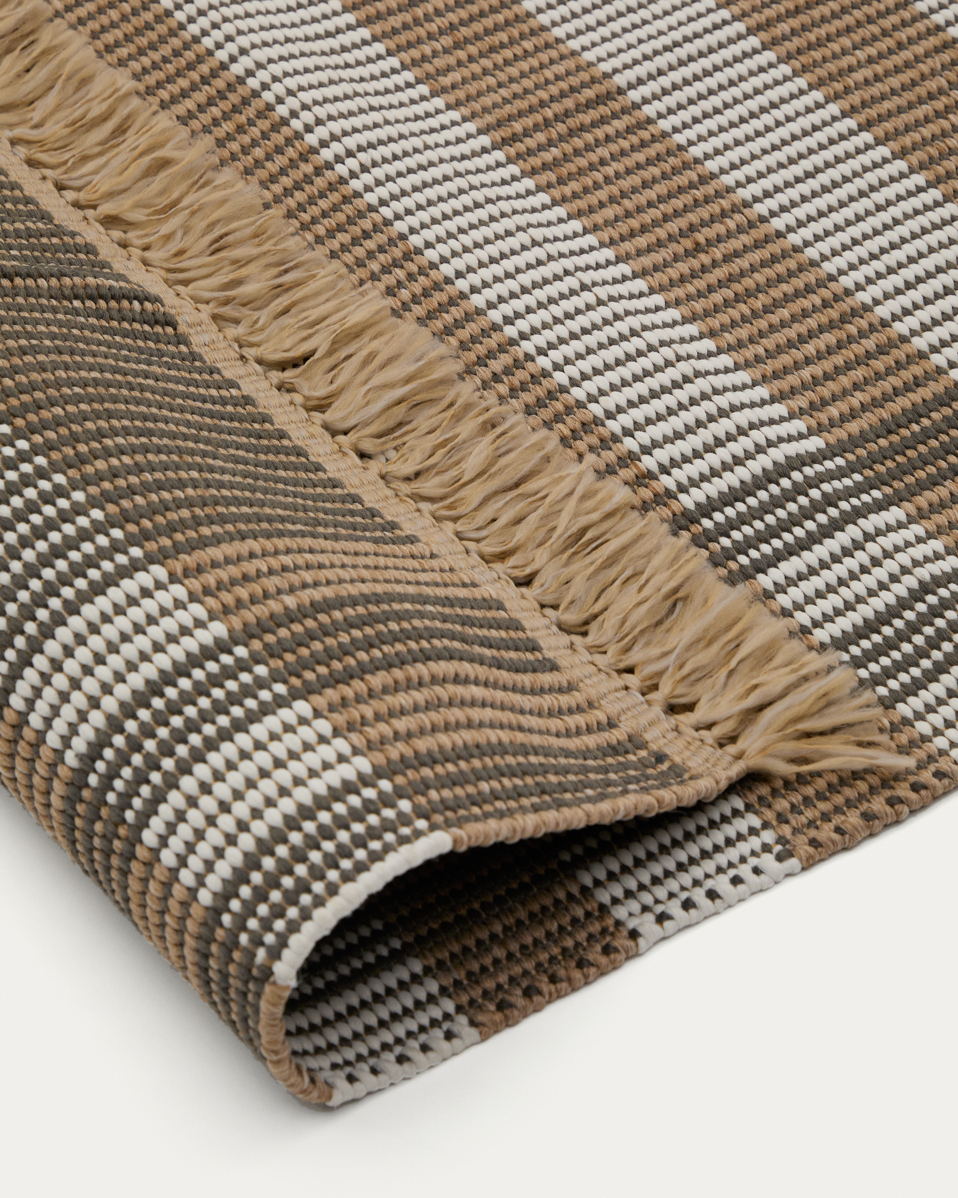 • Kézzel szőtt szőnyeg szintetikus szálakból, kétoldalas ellenkező mintázattal.