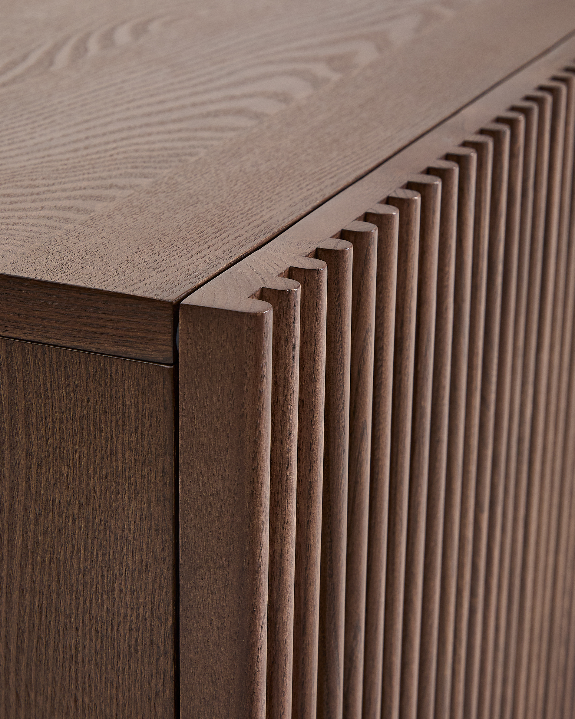 Beyla TV-szekrény hamuzsír furnér és tömör tölgyfa, dióbarna felülettel 180 x 49,5cm FSC 100%