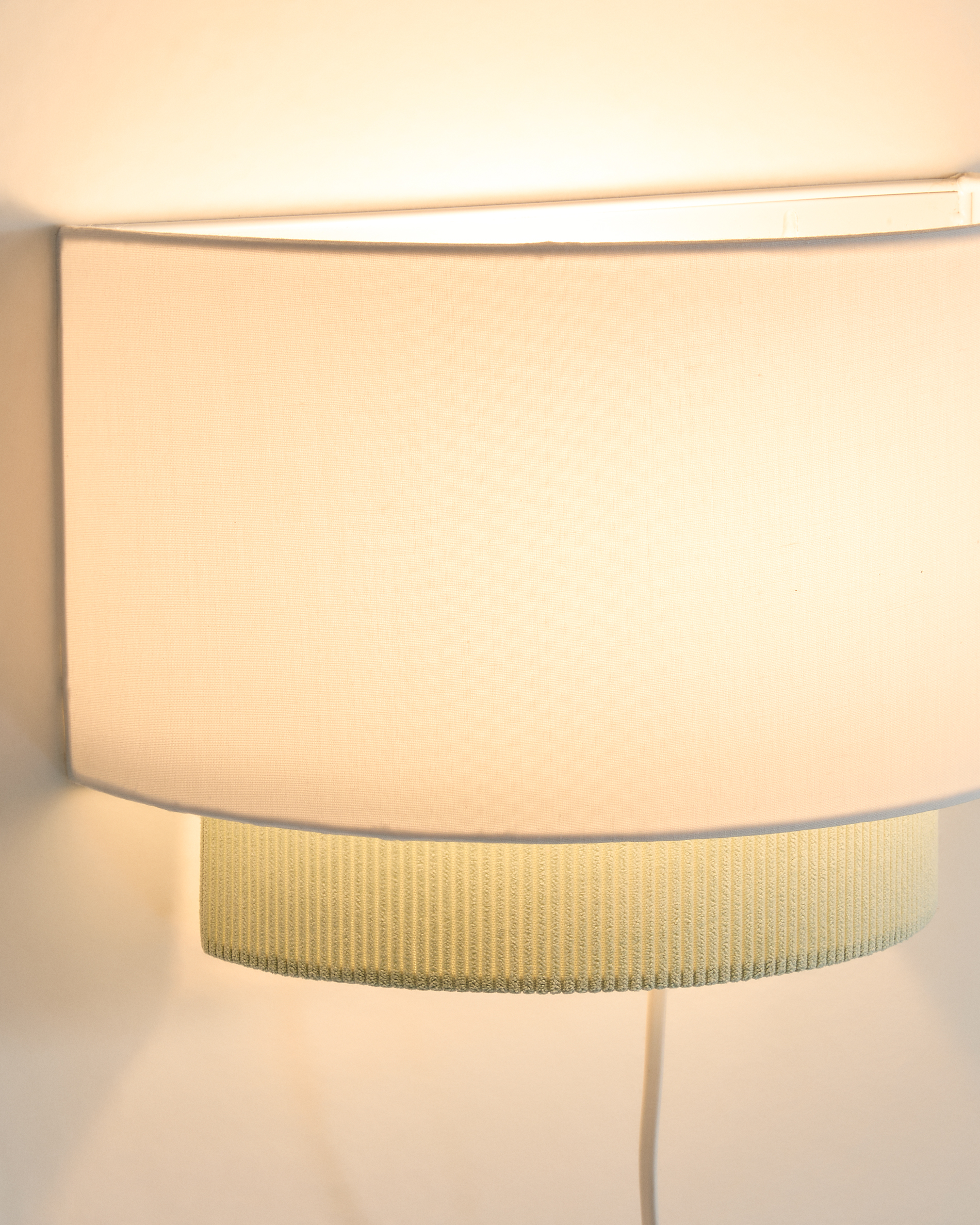 • Falilámpa dupla lámpabúrával, fehér pamuttal és kordbársonnyal.