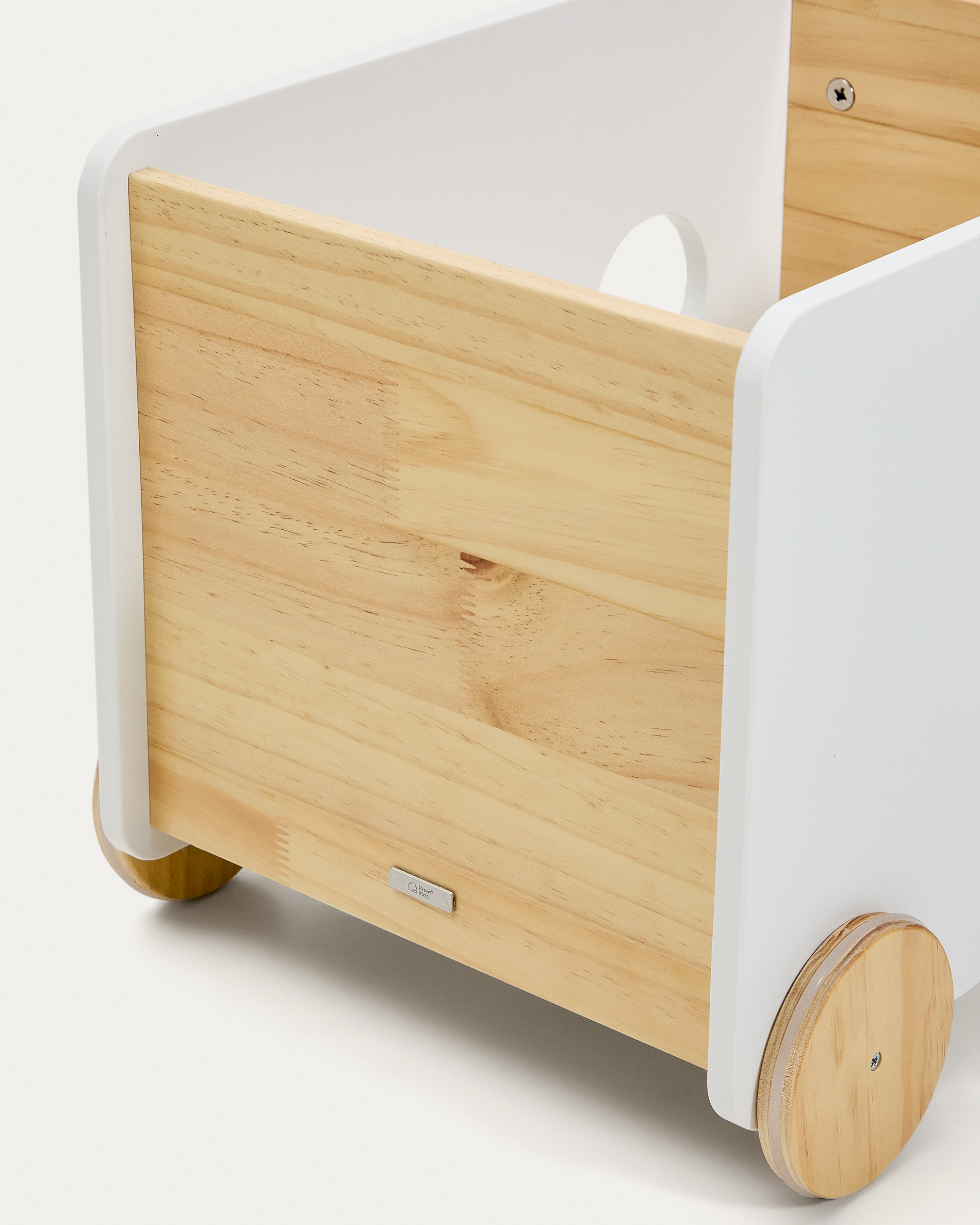 • Tömör fenyőből készült szállítókocsi természetes felülettel és MDF fehér lakkozással.