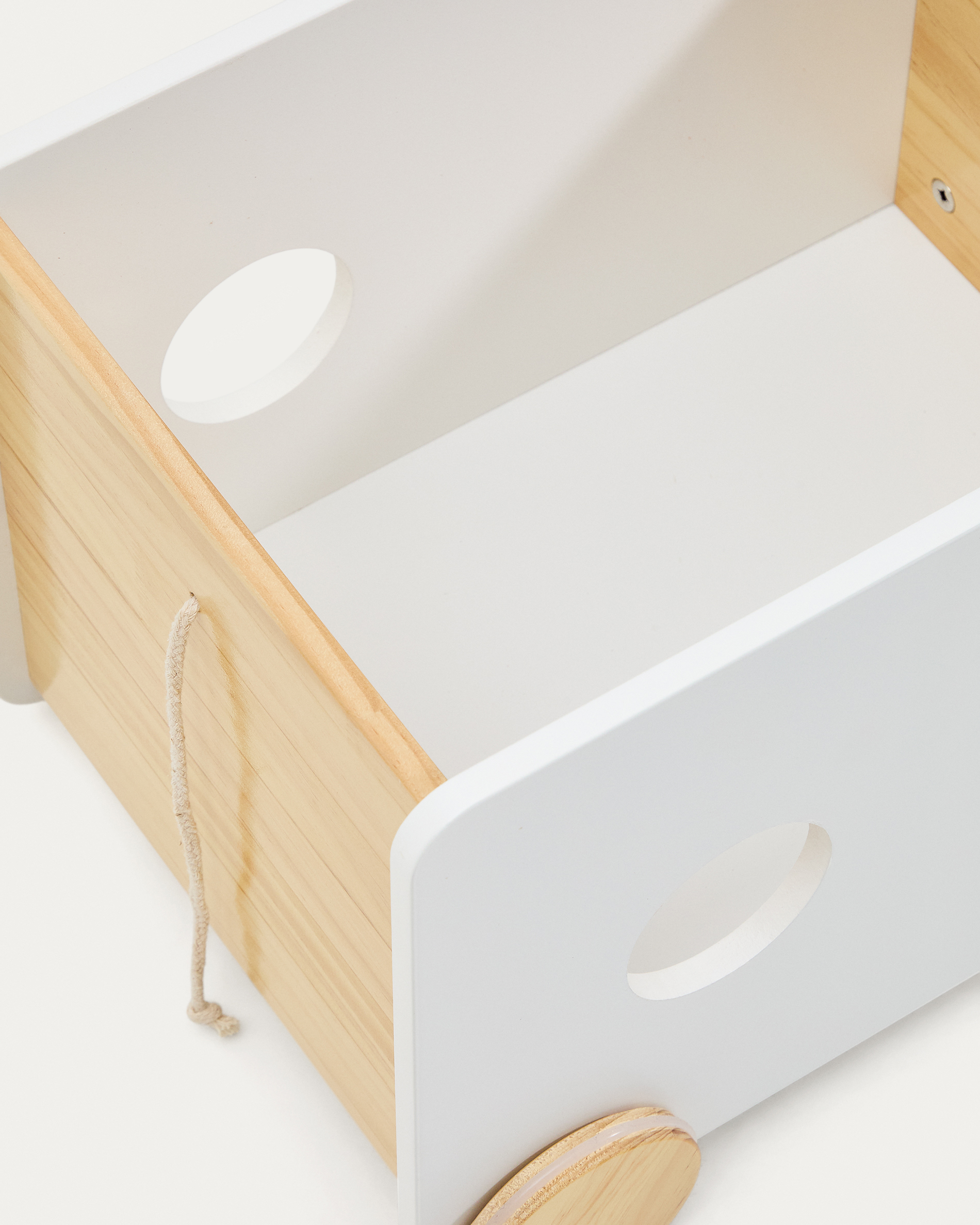 Bianina szállítókocsi tárolóval tömör természetes fenyőből és fehér MDF-ből