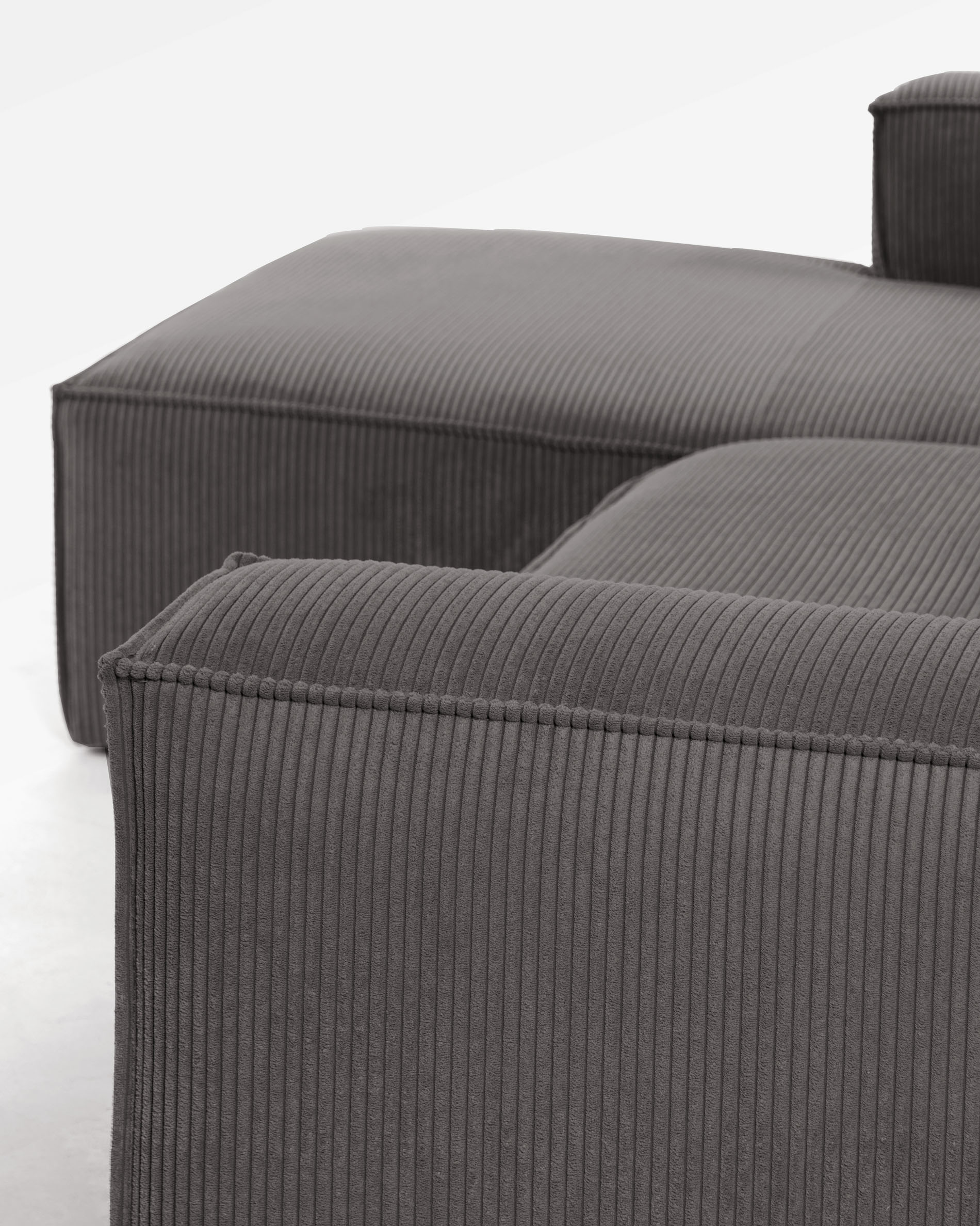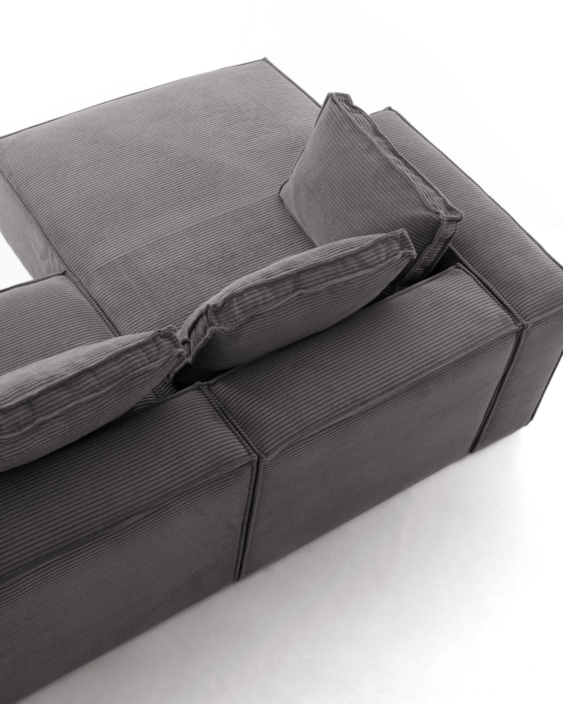 Blok 2 személyes bal oldali napozóágyas kanapé szürke vastag kordbársonnyal 240cm FSC Mix Credit
