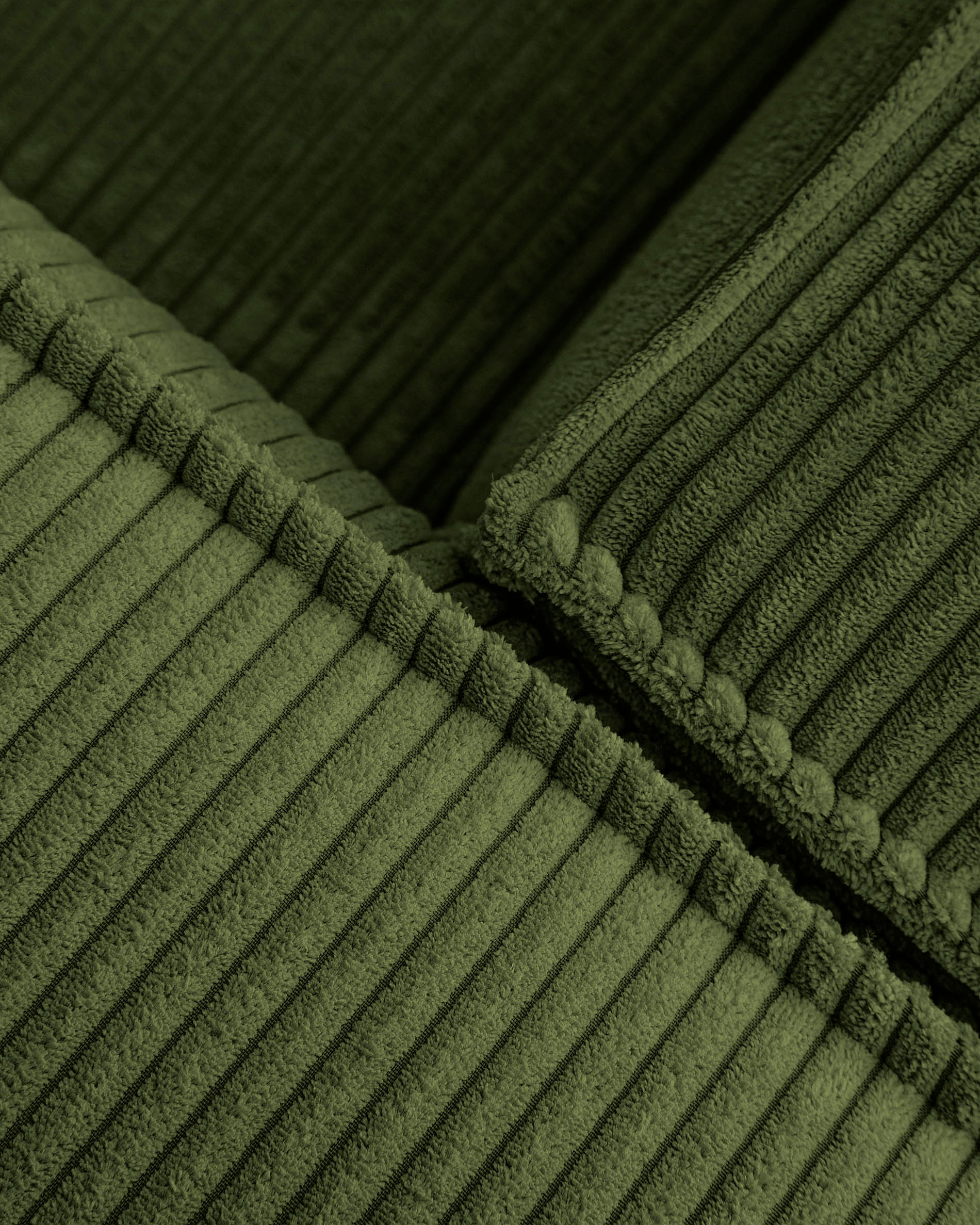 Blok 3-ülős bal oldali ülőgarnitúra kanapé zöld vastag kordbársonyban 300cm FSC Mix Credit