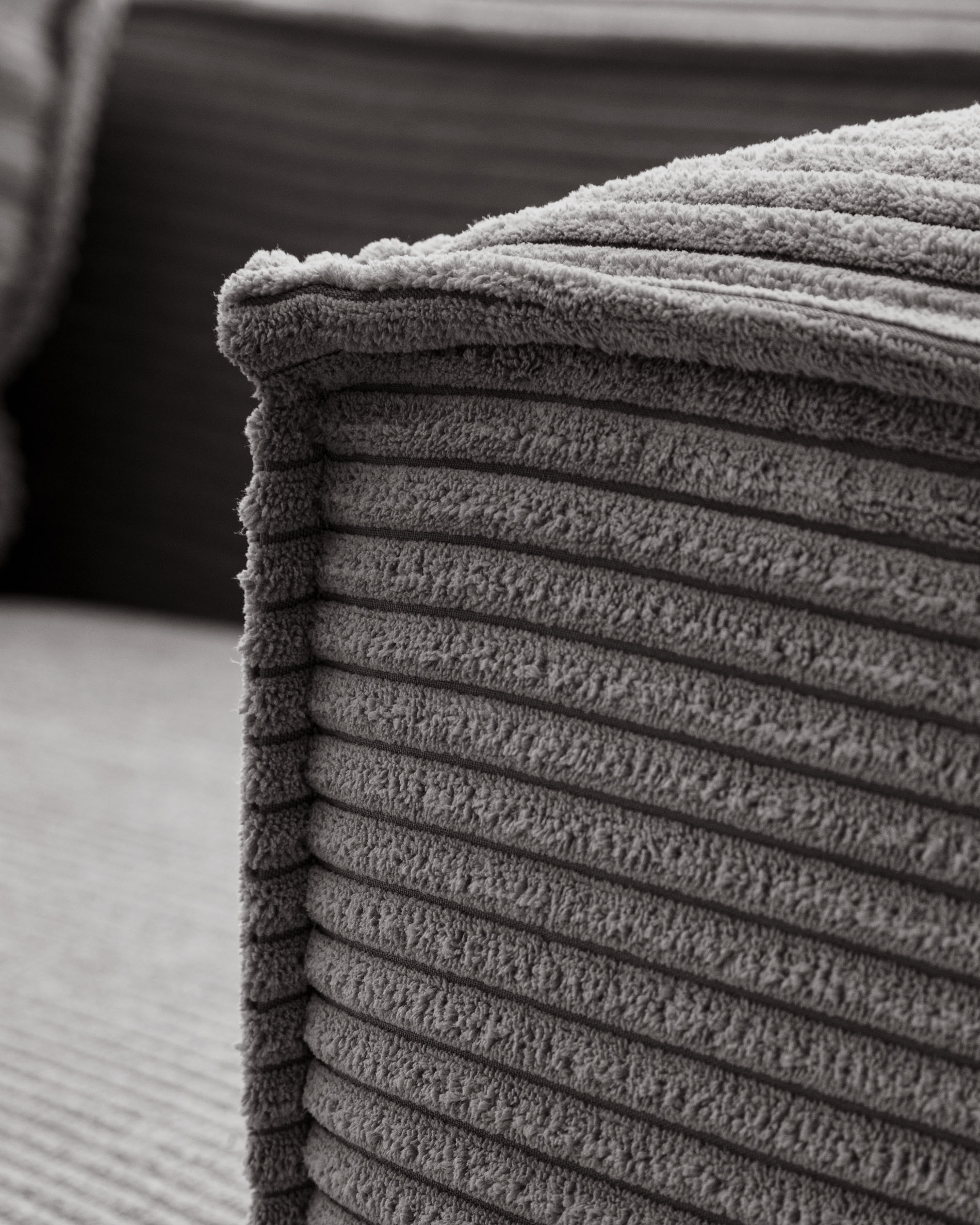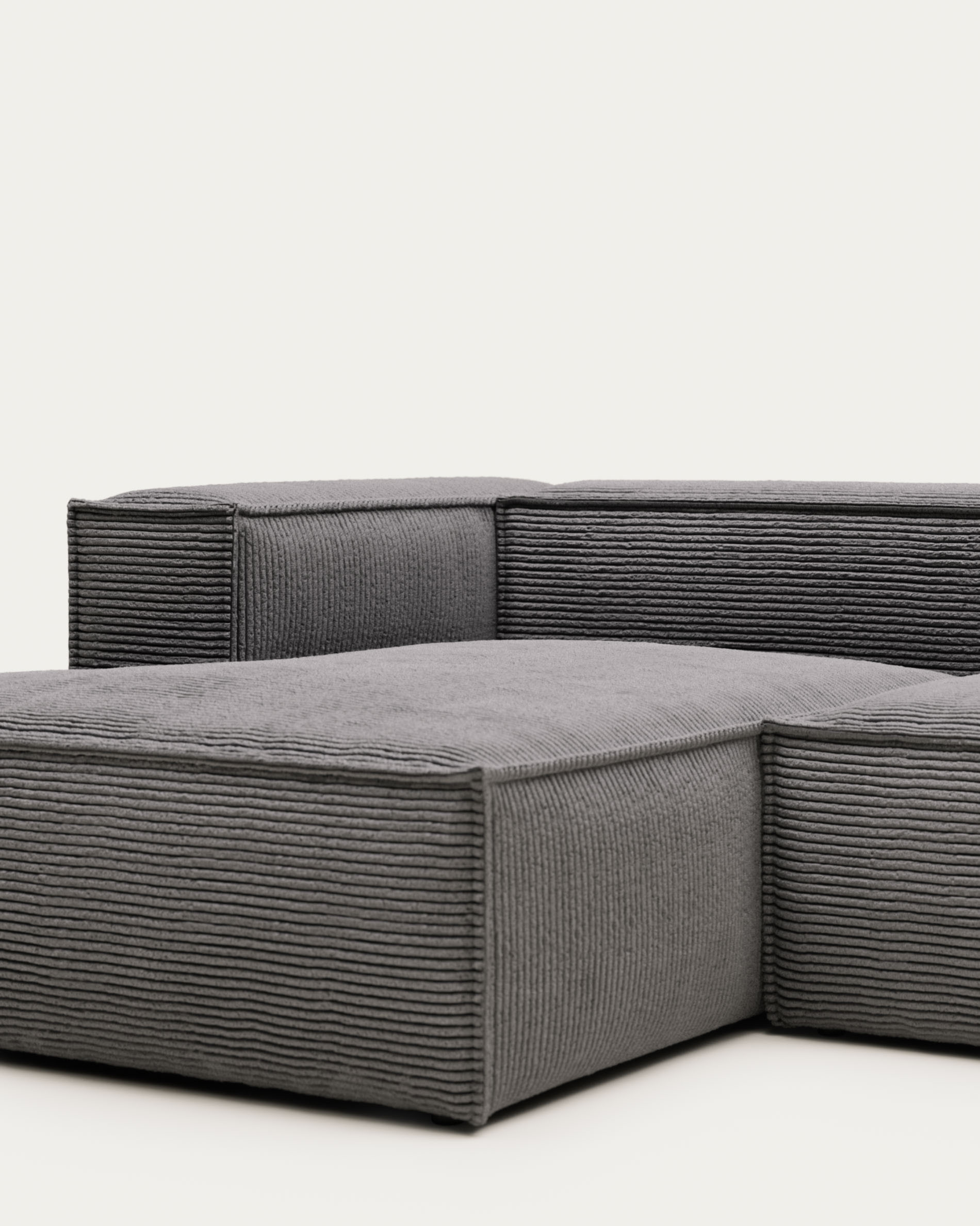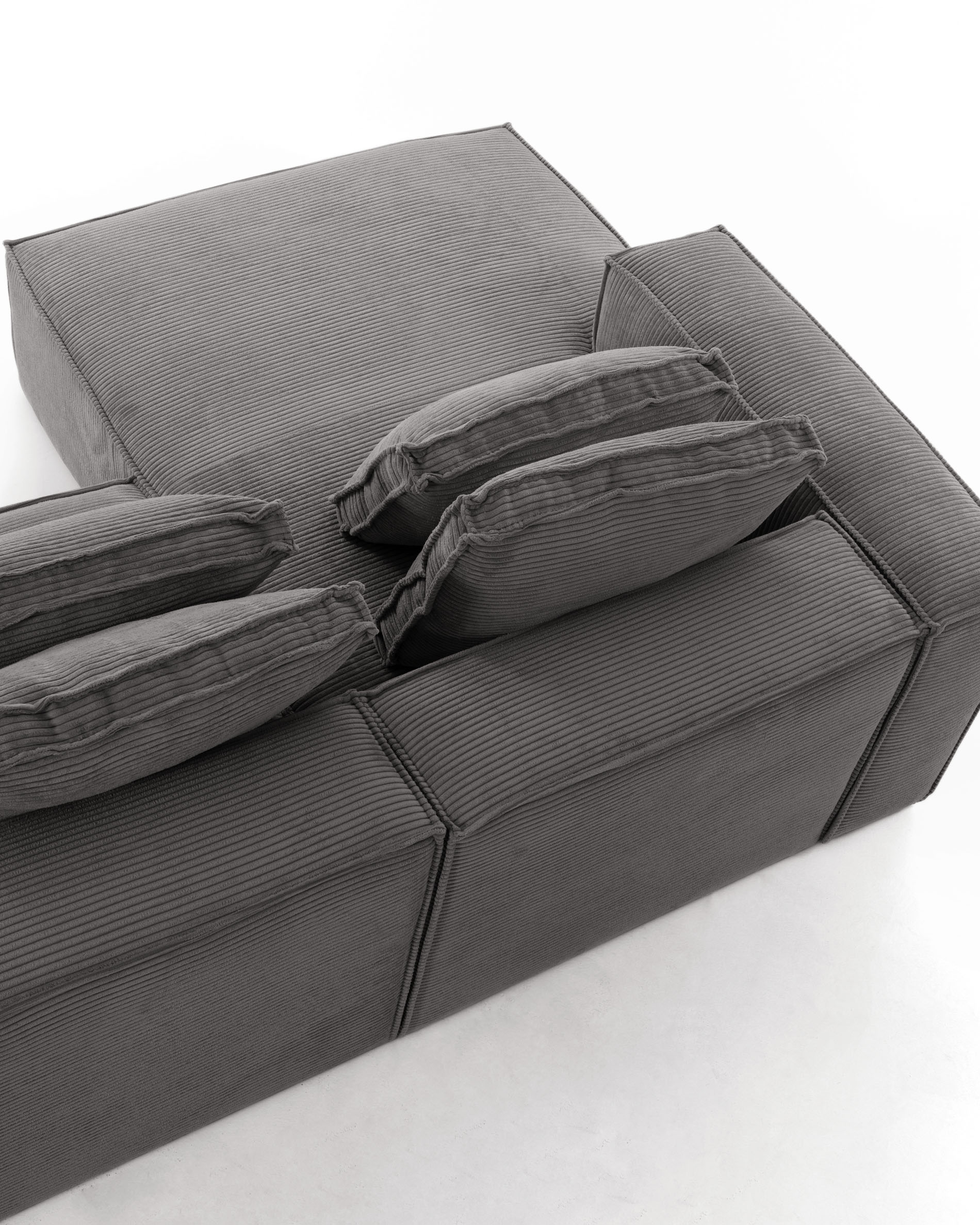 Blok 4 személyes bal oldali napozóágyas kanapé szürke vastag kordbársony 330cm FSC Mix Credit