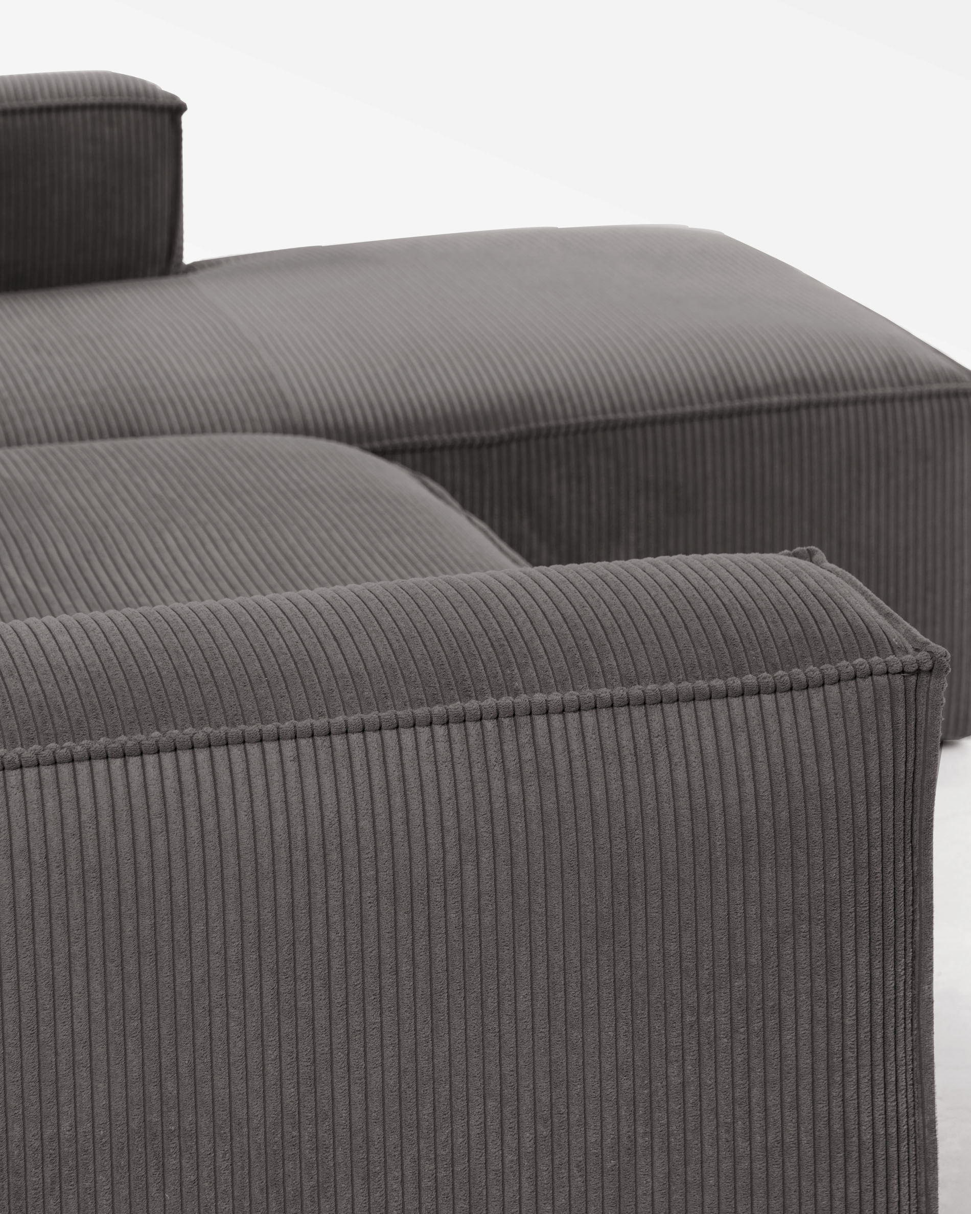 Blok 4 személyes jobb oldali chaise longue kanapé szürke vastag kordbársonnyal, 330cm, FSC Mix Credit